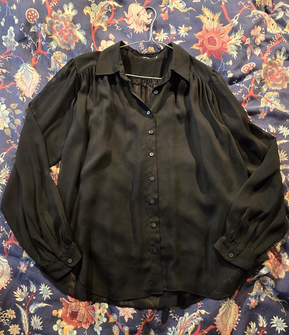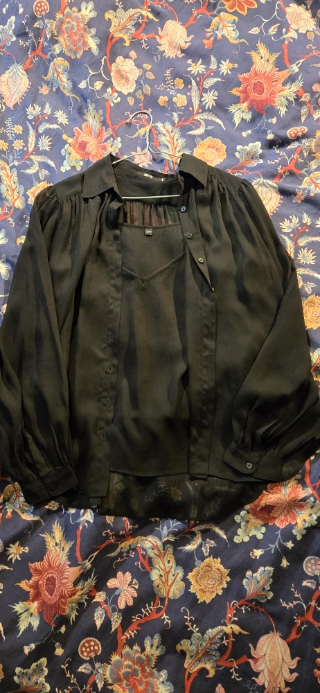 Long sleeve button up blouse.