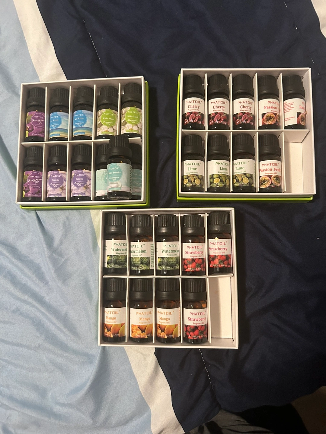 29 fragrance oils of various scents, 10 ml each. Great for diffusers or candle making (currently downsizing collection). $25 for all (must take all)//pickup in the Killarney area.