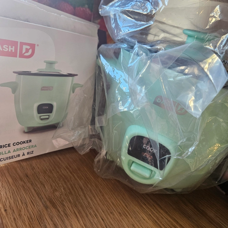 Mint green Dash mini rice cooker. New with instructions book, never used.