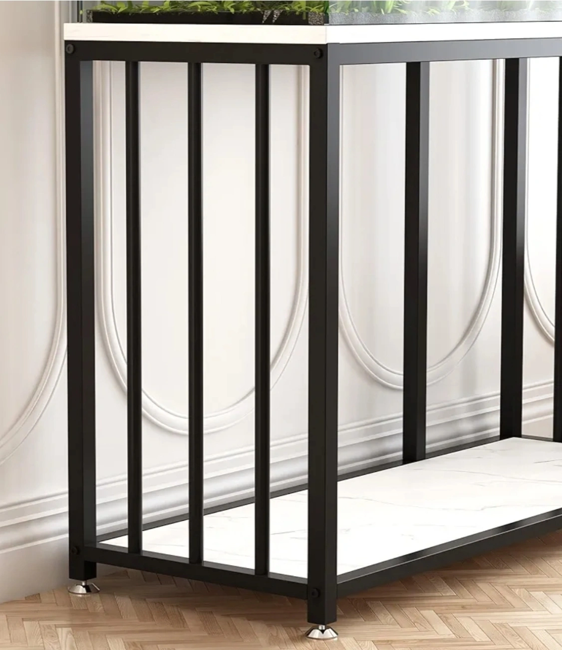 Modern Design: The aquarium stand with its powder-coated black steel and white wood desktop, this aquarium stand has a contemporary look that can easily complement your current furniture style.