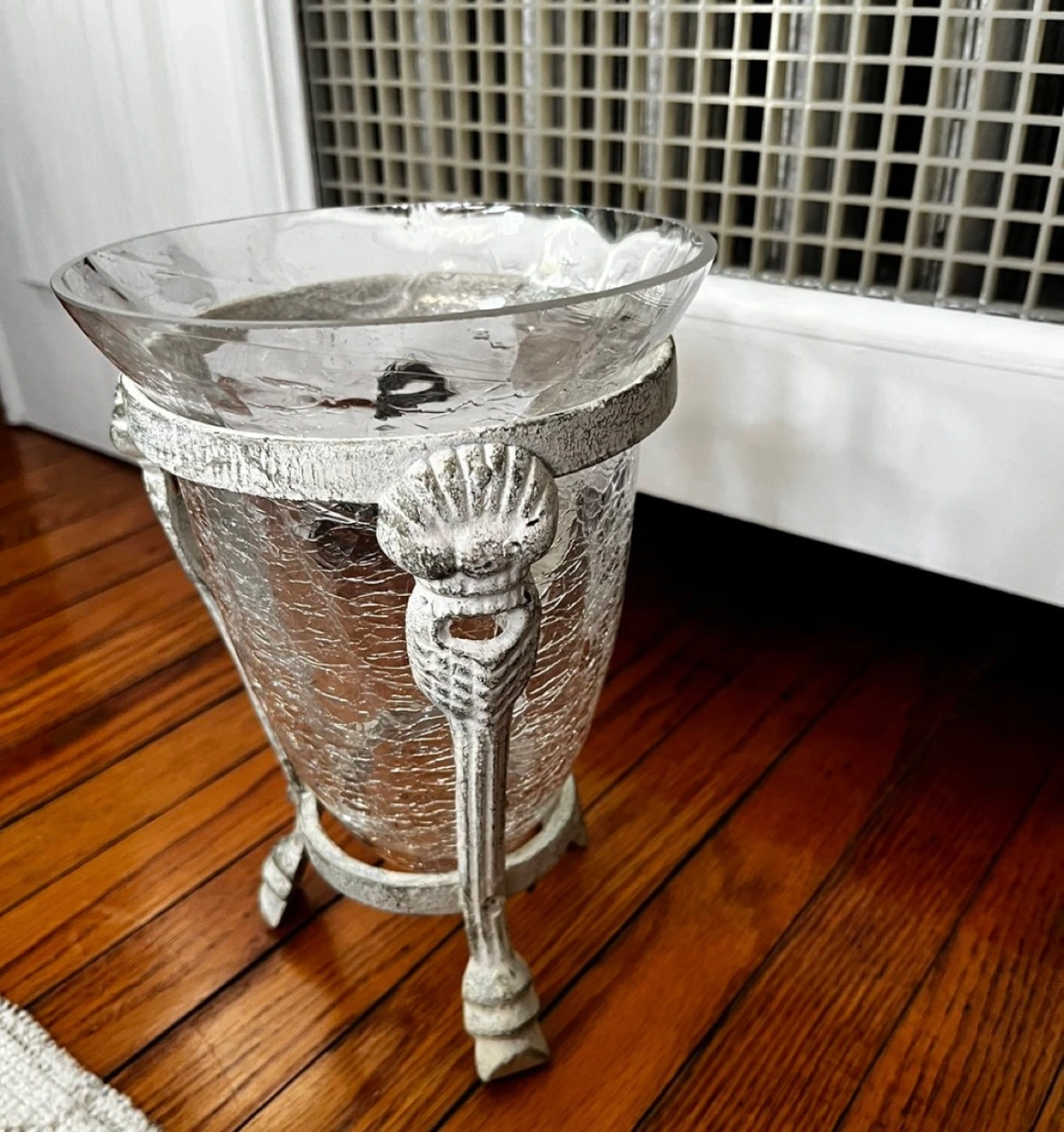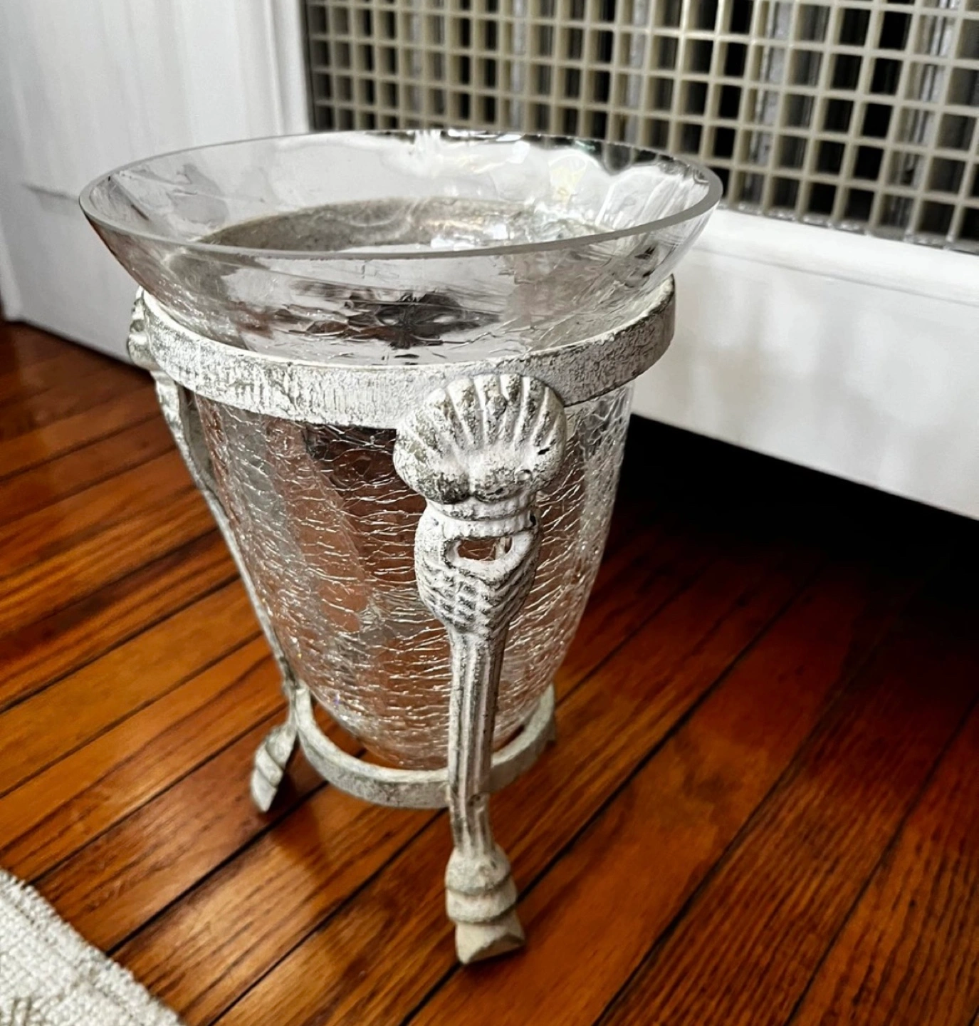 Glass Vase with metal stand. Glass vase in holder. Great for holding decorations potpourri. ***Pick up at 1795 St.Clair West.Cash only.Asking Price $10. FIRM PRICE.Low ballers will not be answered my price is fixed. No Refunds / Exchange. If you see it posted on here it means it is still available,so please don't ask. Just tell me when would you like to pick up. I won't answer to "I'm interested in this or l'm interested in buying" if it's up, it's available.***First come first serve. Feel free to also check my other listings!