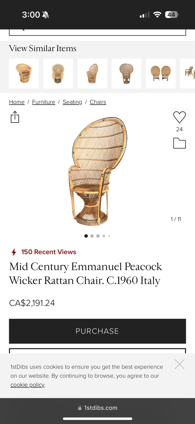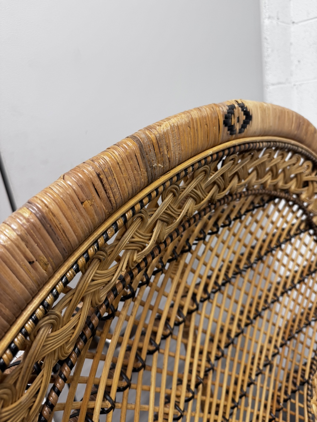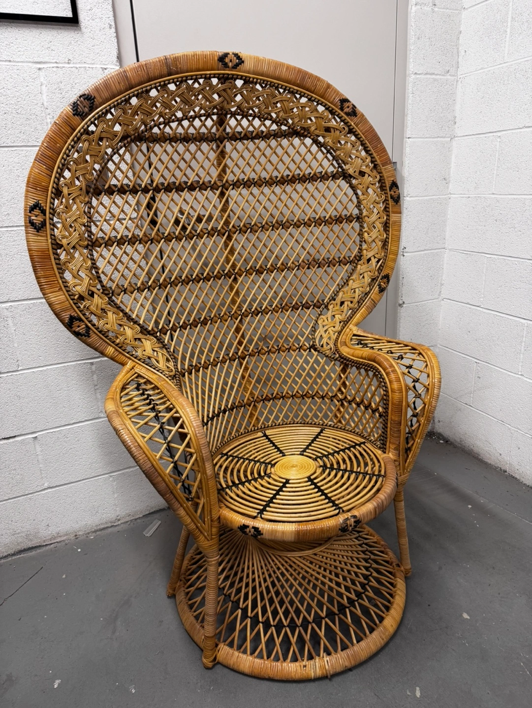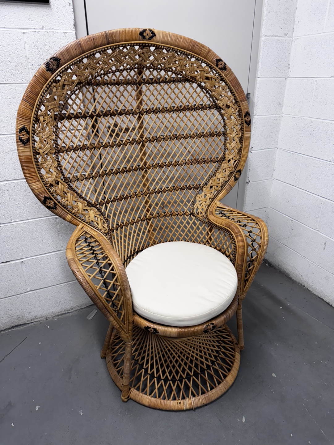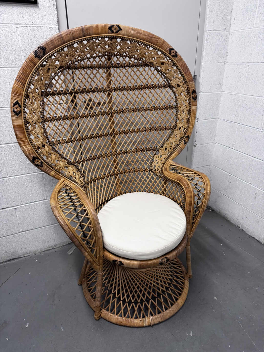 Vintage wicker peacock chair with a white cushion. Great condition, minor wear. Cared for and hardly used.