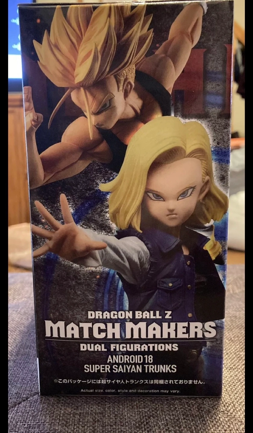 Android 18 figure from the Dragon Ball Z Match Makers series. Dual figuration figure, with Super Saiyan Trunks figure sold separately.