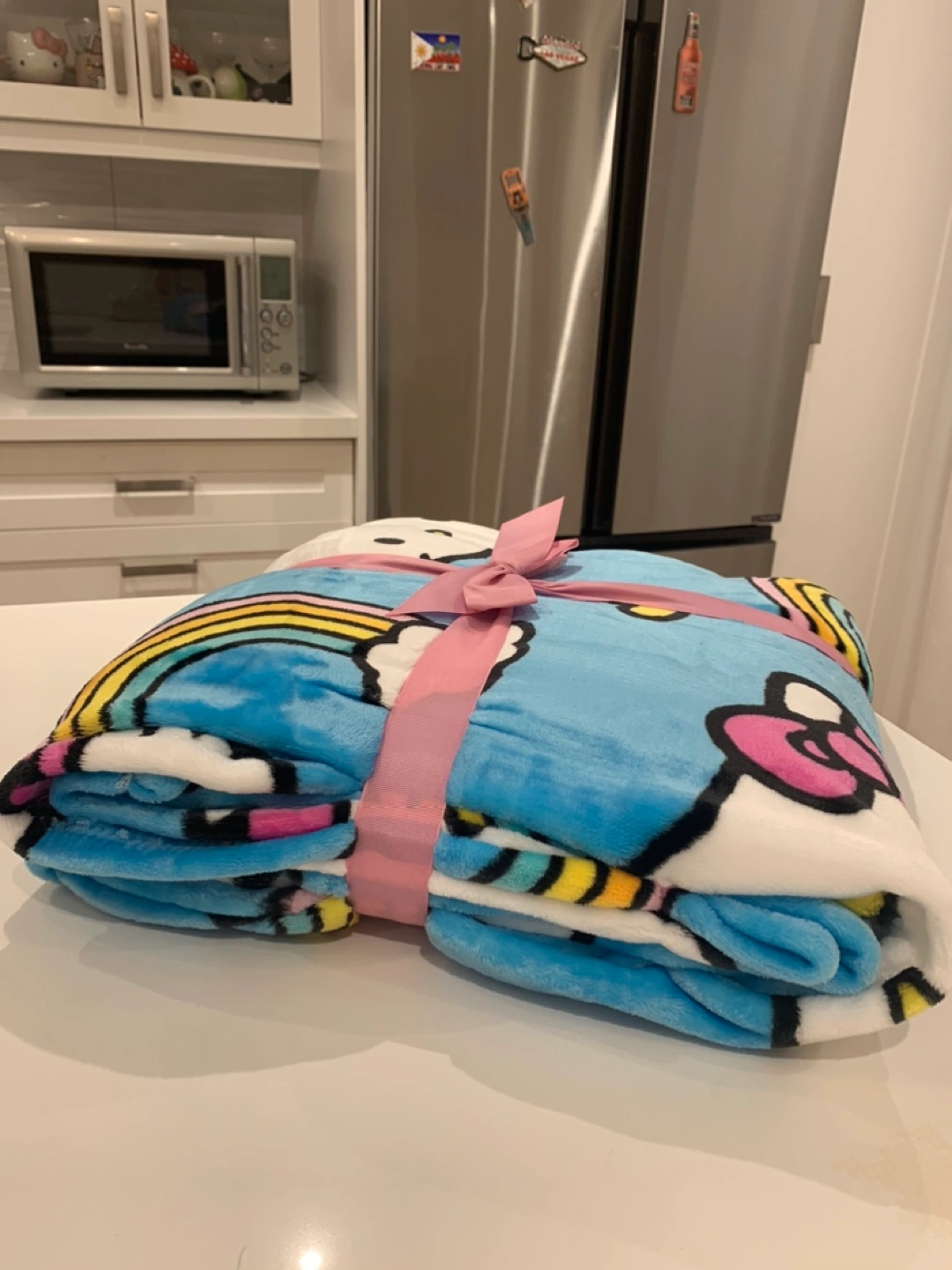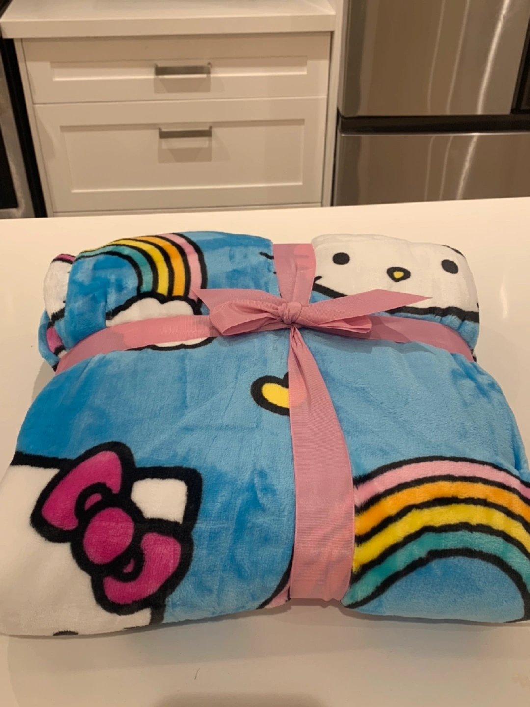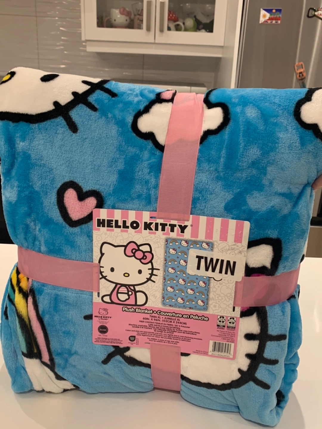 529π PRICE IS FIRM! New, never used. Features a blue and white pattern with Hello Kitty and rainbows. Twin size. Serious buyers only please! π