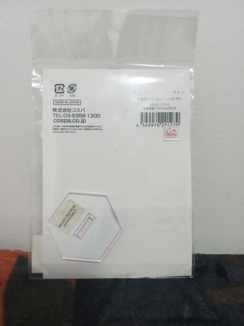 Acrylic stand featuring a character from the D.C.~Da Capo~ franchise. New, never used. Comes with original packaging.