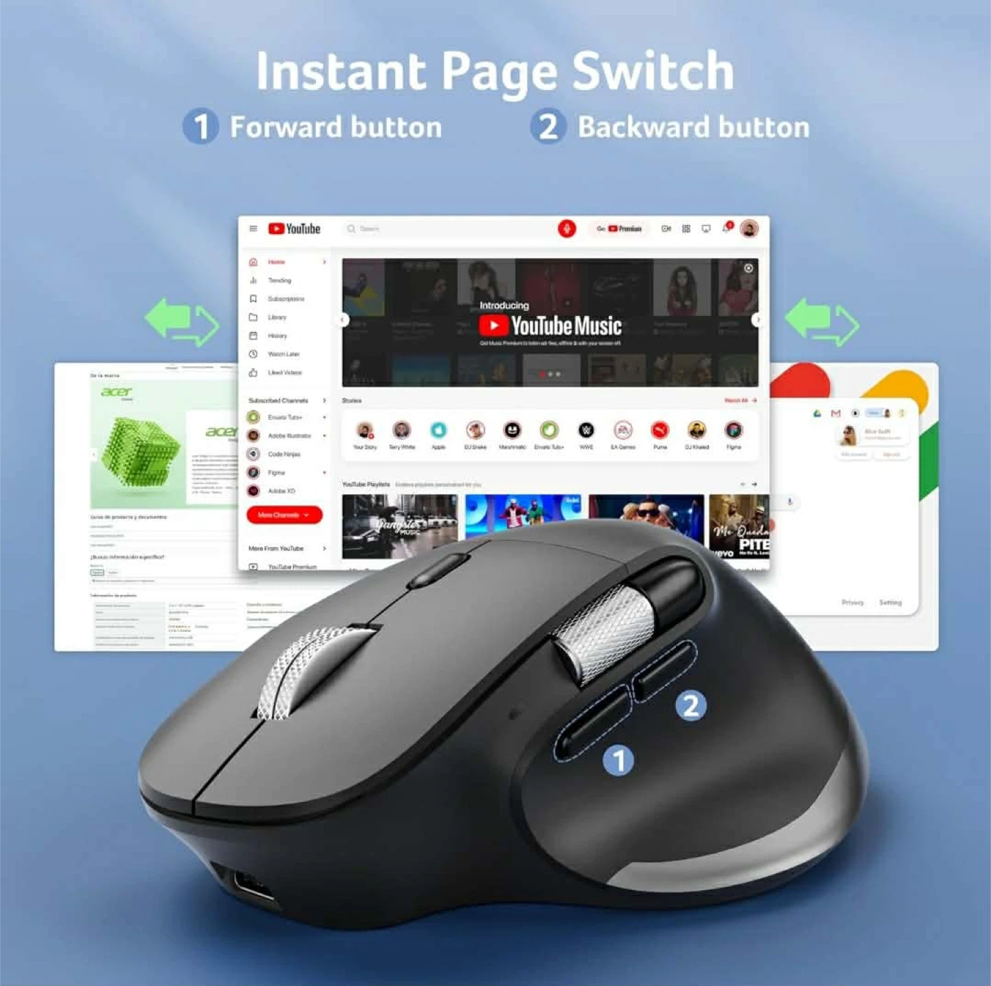 This Acer dual-mode wireless mouse offers convenient connectivity. It features a 500mAh battery with Type-C charging and a dedicated side scroll wheel for easy page navigation. Enjoy extended battery performance with its 10-minute auto-sleep function.