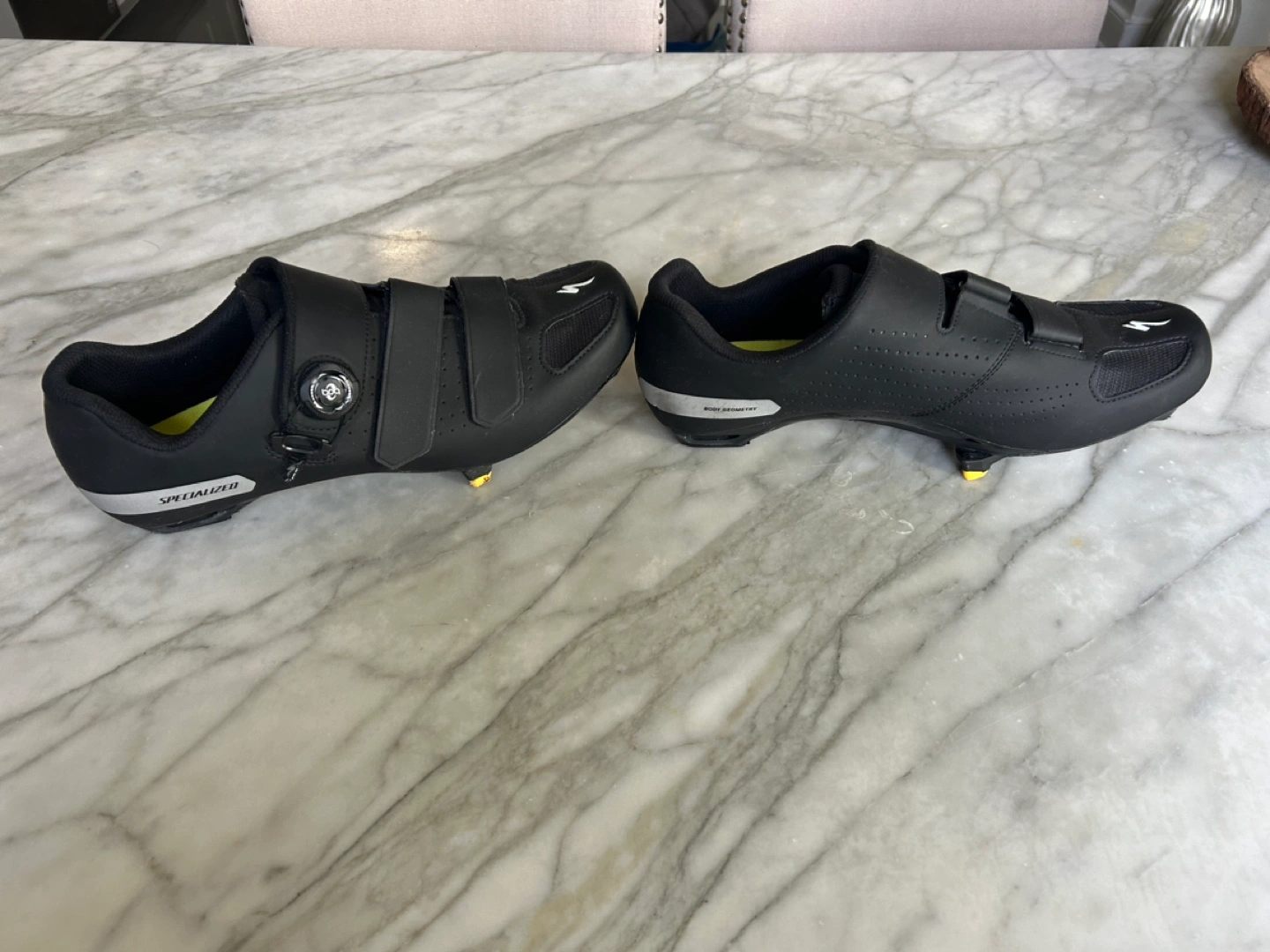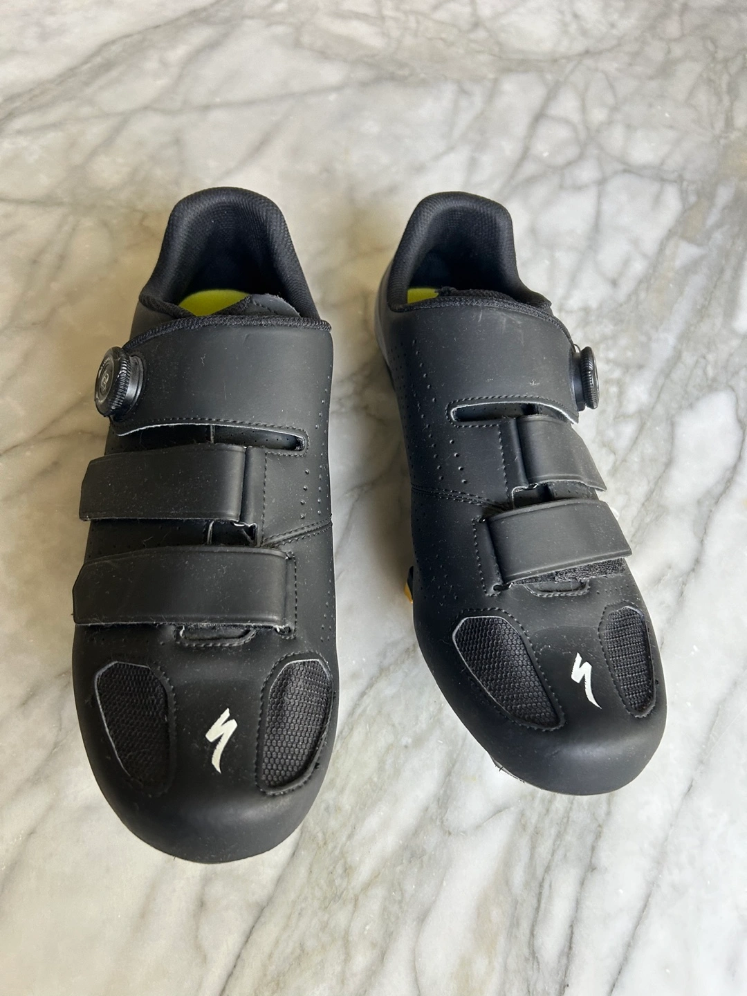 Get ready to hit the road with these Specialized Torch 1.0 road cycling shoes! These shoes, in size 46, offer great performance and comfort for any cycling enthusiast. Please note that they have been previously loved, so expect some signs of wear. Despite being a used pair, they’re ready to help you achieve your personal best! Additional details: * Brand: Specialized * Model: Torch 1.0 * Size: 46 If you're reading this, yes, they're still available! No need to ask, just get ready to clip in and ride.