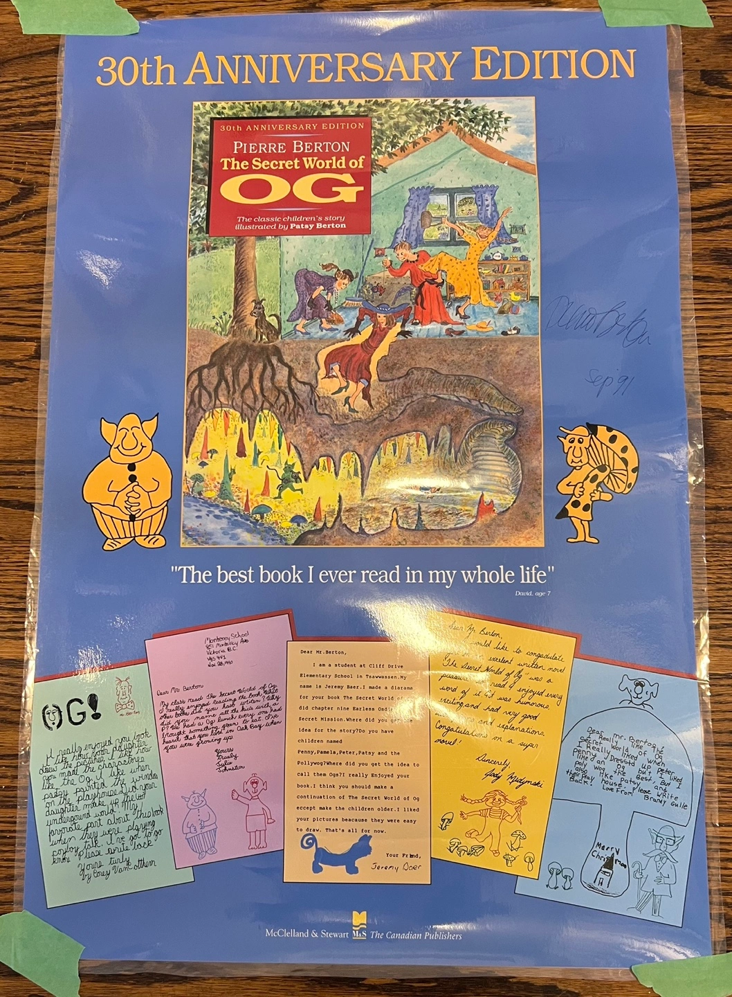 A poster promoting Pierre Burton’s 30th Anniversary Edition of his book “The Secret World of OG” signed by Pierre in September of 1991.