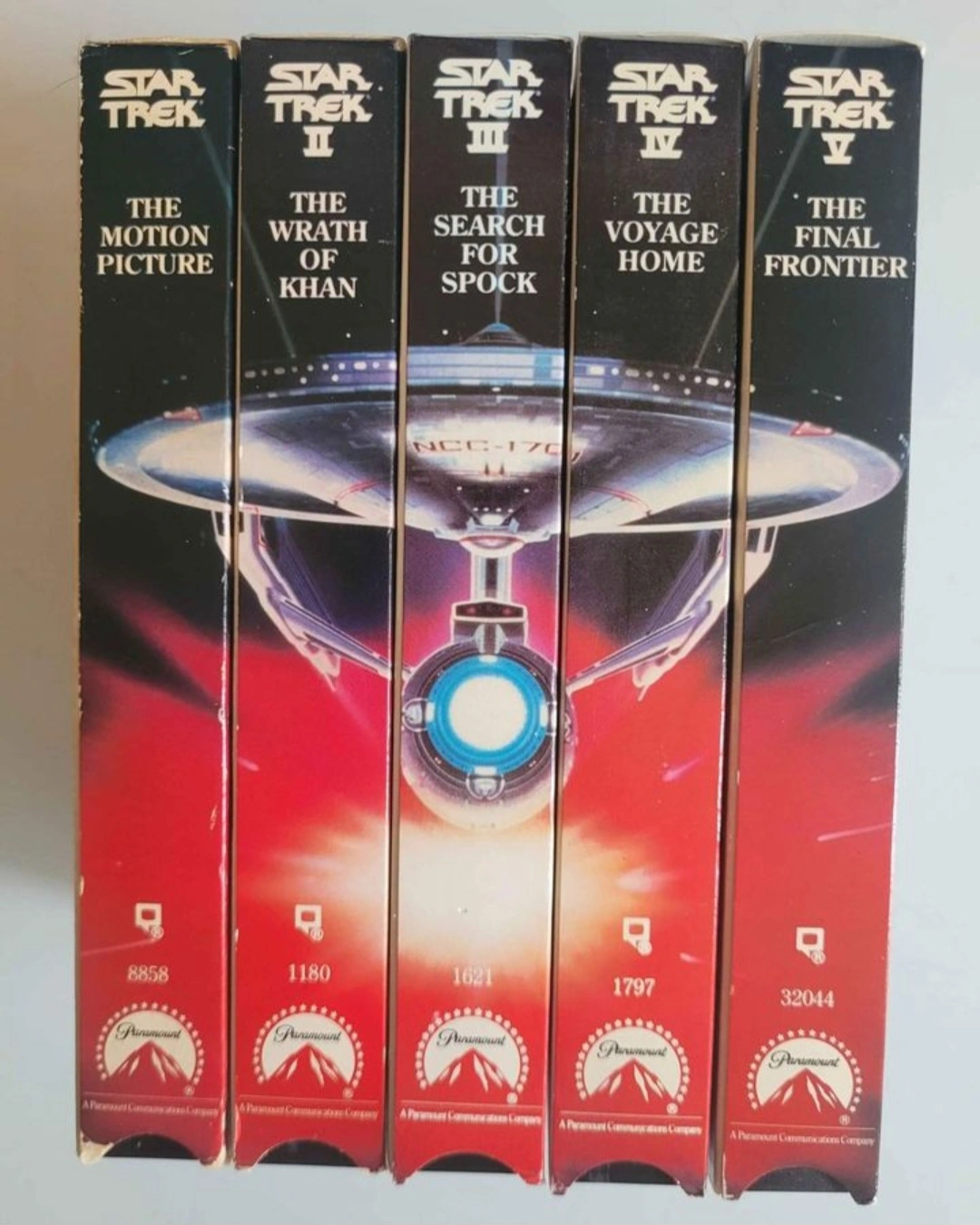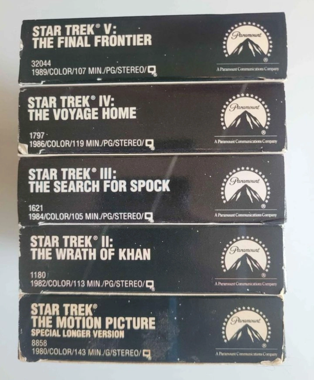 Star Trek VHS tapes, all in good condition. Includes Star Trek: The Motion Picture, The Wrath of Khan, The Search for Spock, The Voyage Home, and The Final Frontier.