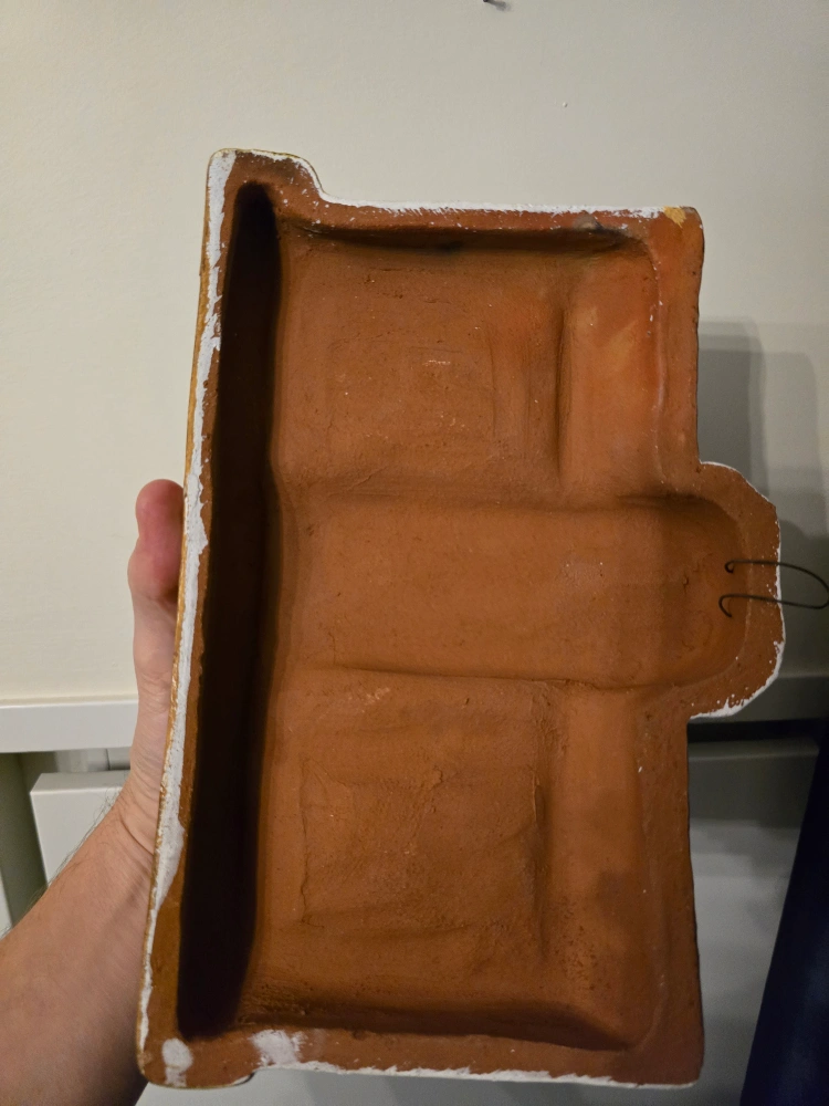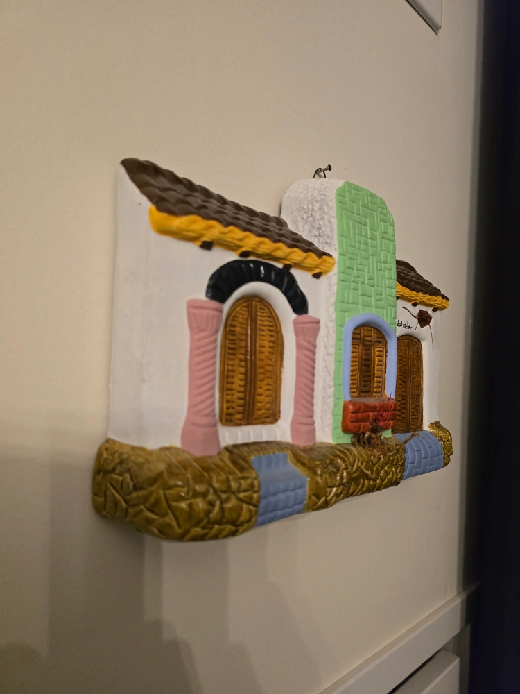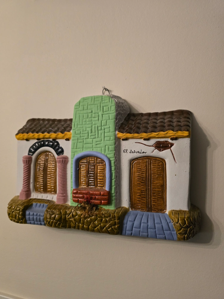 365Rare hand-made and painted ceramic wall hanging with a design of a traditional El Salvadorian building. It has a loop on the top for hanging. 11 x 8 inches.
