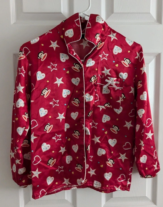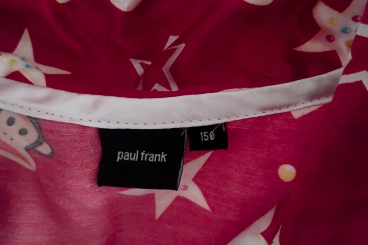 Pink and white Paul Frank 2016 pj set. Long-sleeved top with button closure. Elastic waistband pants. Euro size 150 CM.