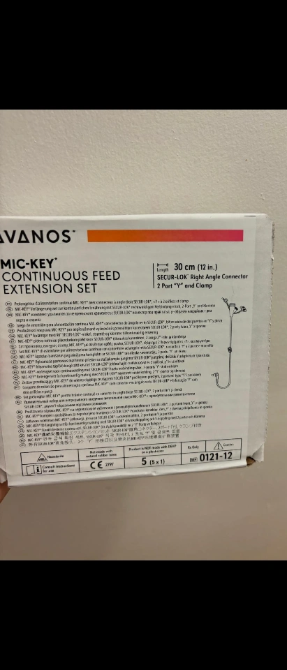 Avanos Mic-Key Continuous Feed Extension Set 30 cm (12 in.) long. Includes right angle connector and clamp.