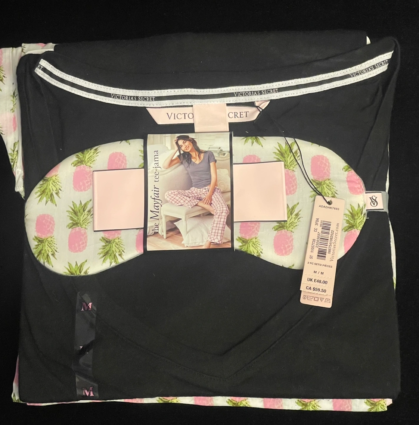 New with tags, size M, includes sleep mask. Black top with pink pineapple print bottoms. Perfect for lounging or sleeping.