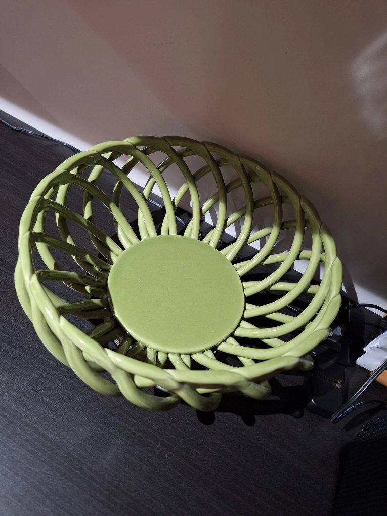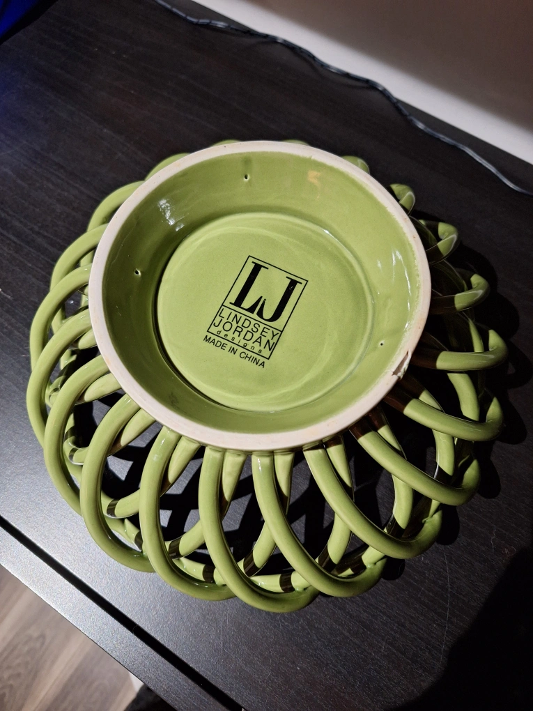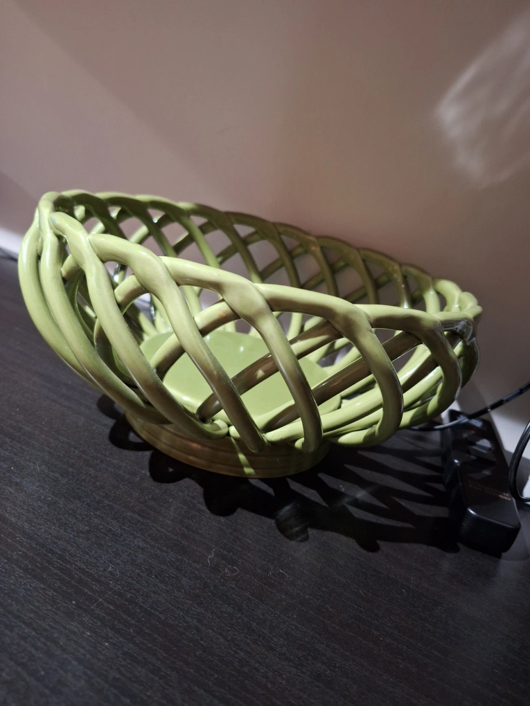 Lindsey Jordan green ceramic woven basket. Great for fruit or decorative purposes. Like new condition, barely used!