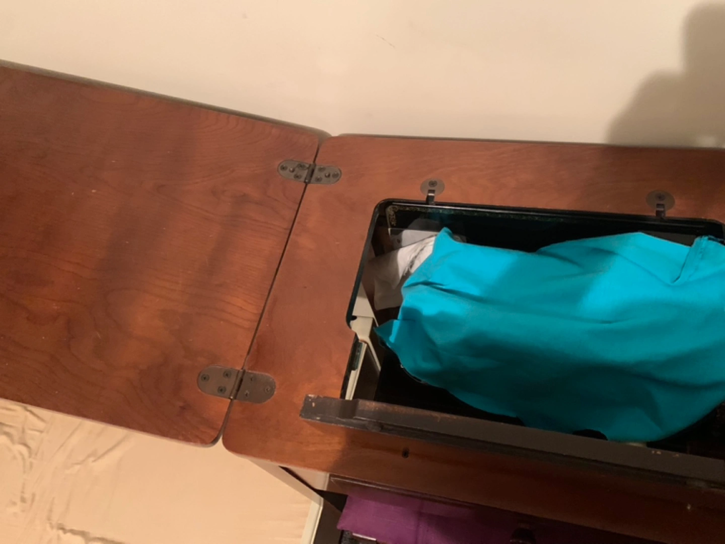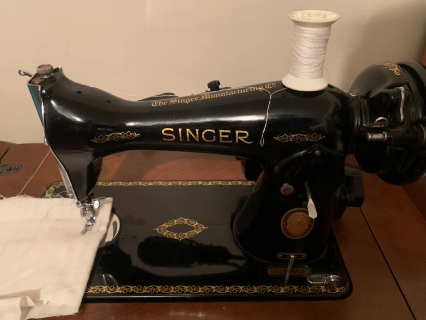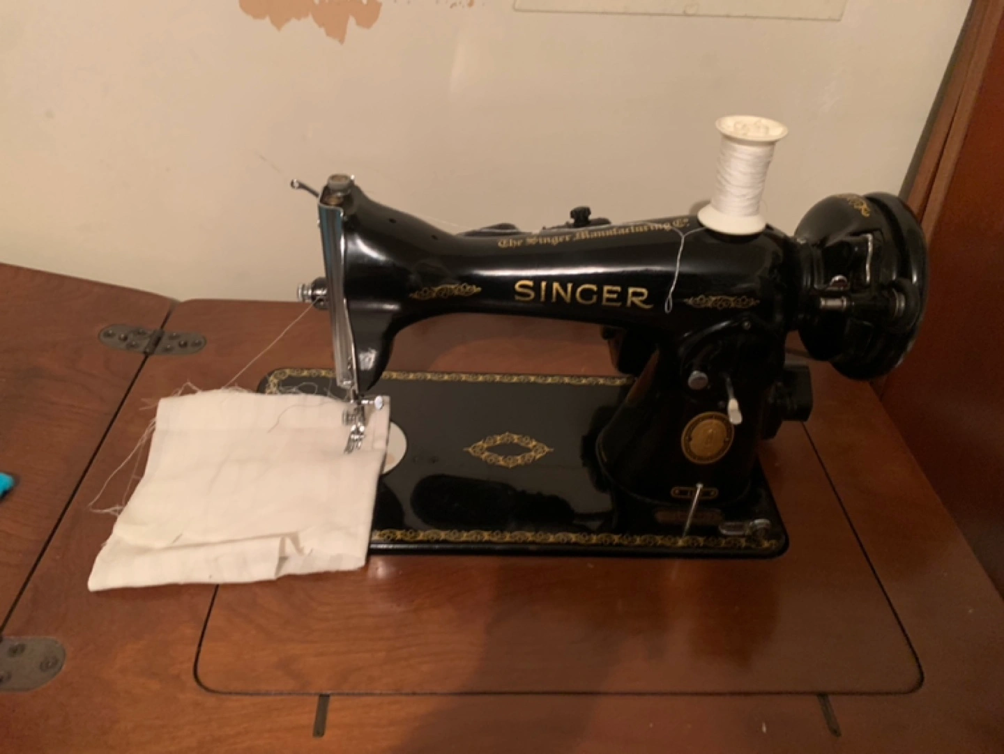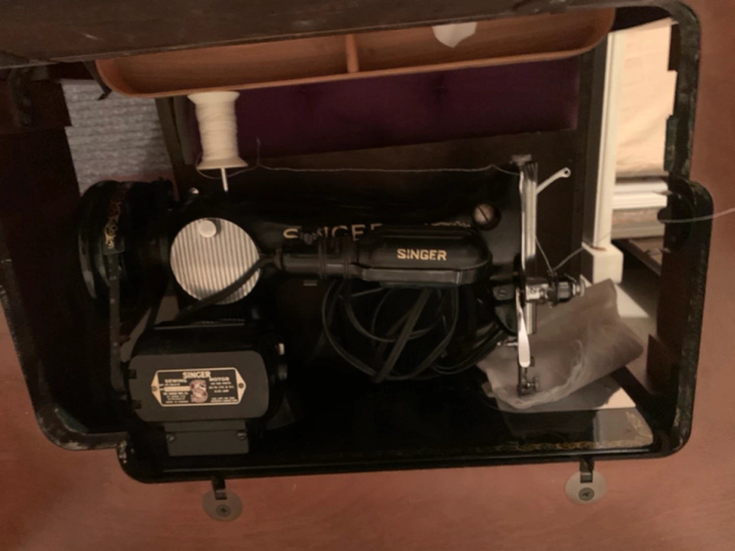 Antique Singer Sewing Machine with Folding Cabinet and Stool