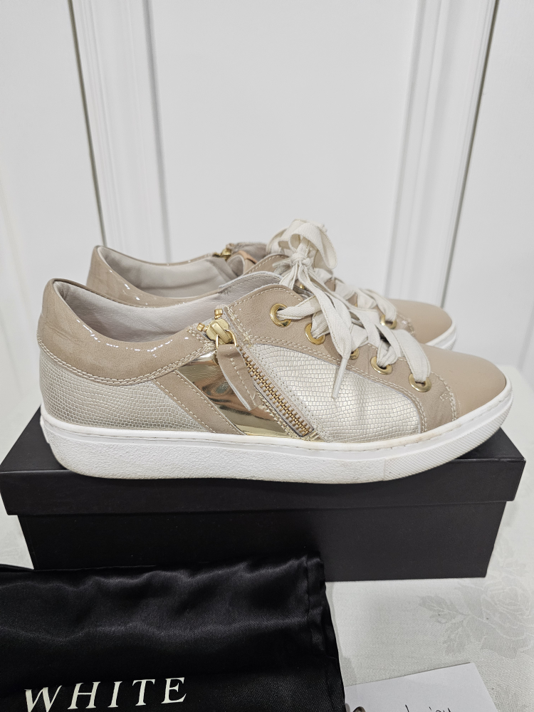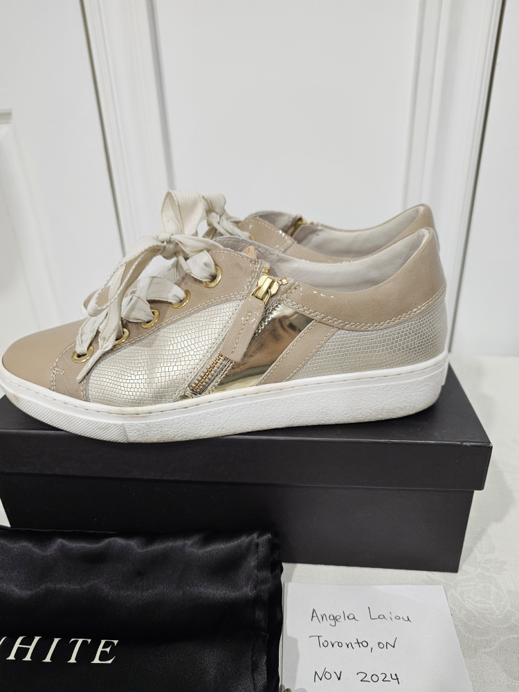1 / 61 / 6Buy & SellRon White Women's SneakersRon White Women's Sneakers$125Leather sneakers with gold accents and laces. Comes with dust bag and box.ConditionGoodSize39BrandRon WhiteWHERE TO MEETCheck LocationView MapSELLERverifiedAngelaIonview1549 reviews0 chats·1 favorites·37 viewsSEND CHAT TO SELLERHi Angela! I’m interested in your listing.Hi Angela! I’m interested in your listing.Get the Karrot app to chatSign In to chat