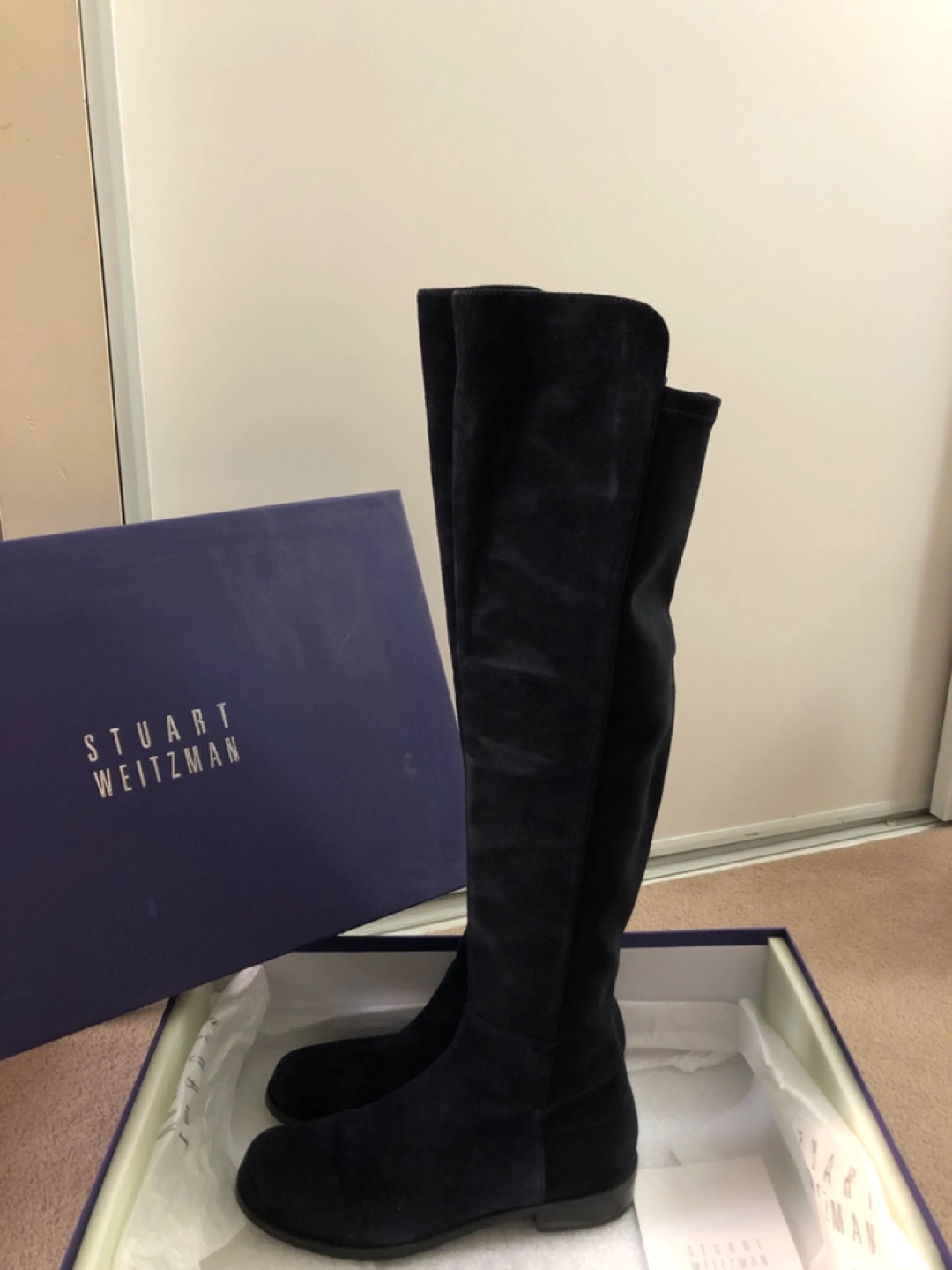Stuart Weitzman 5050 Suede Boots (Navy)