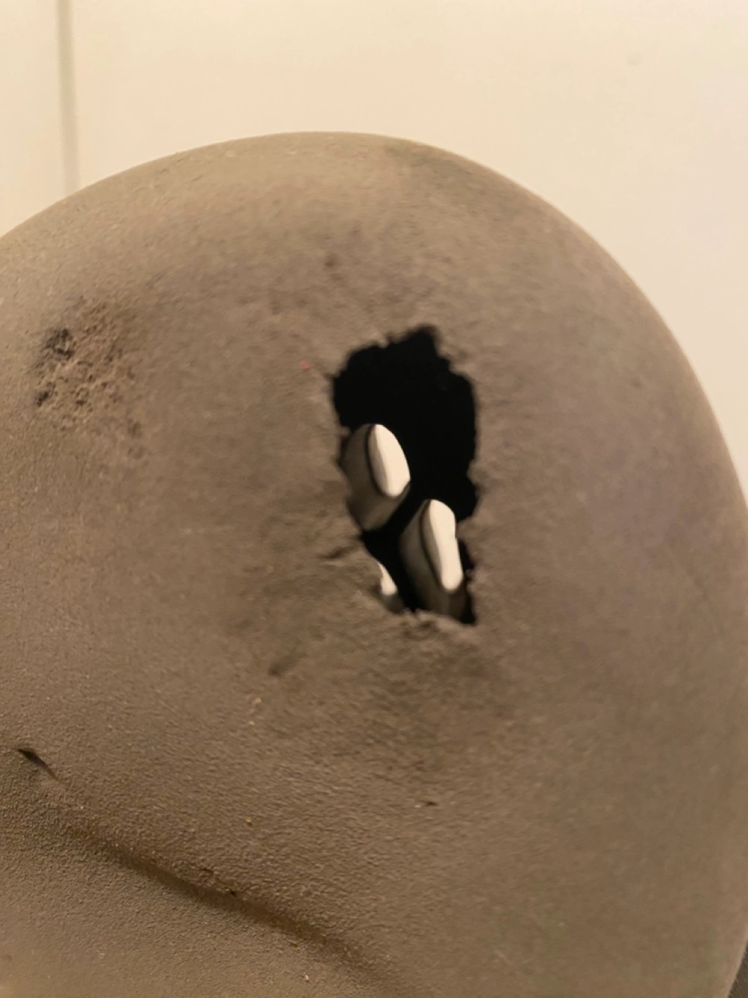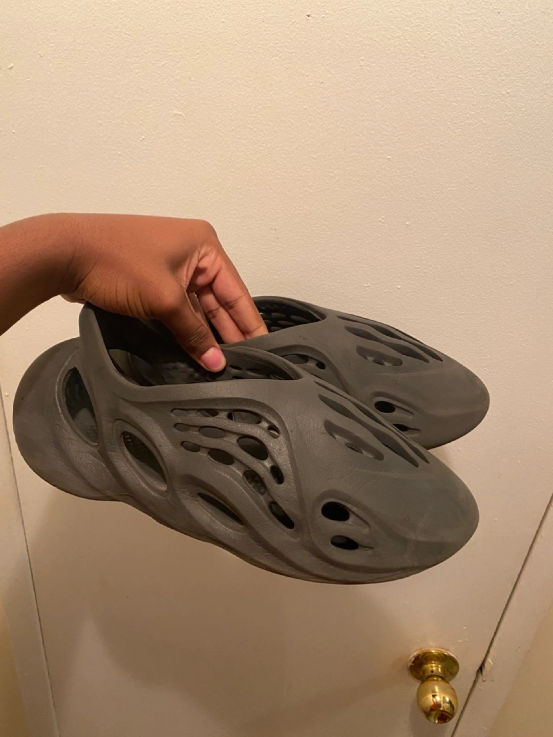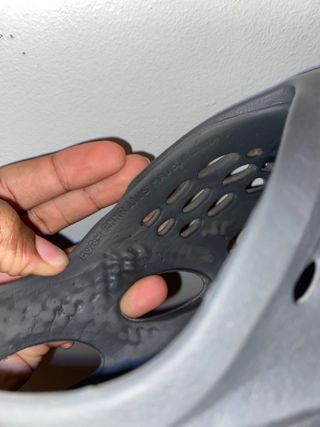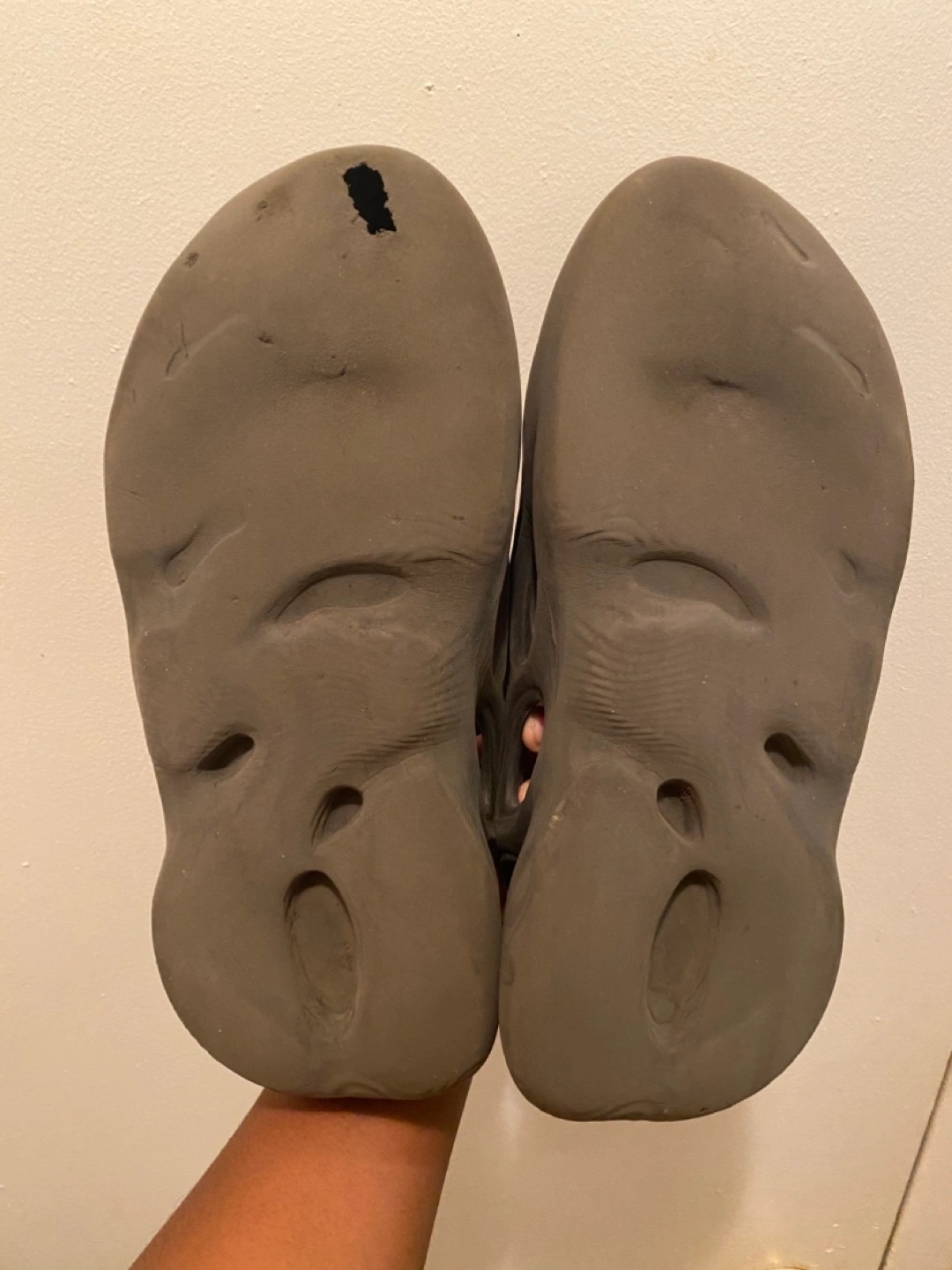 142Grey foam runners with a hole on one.