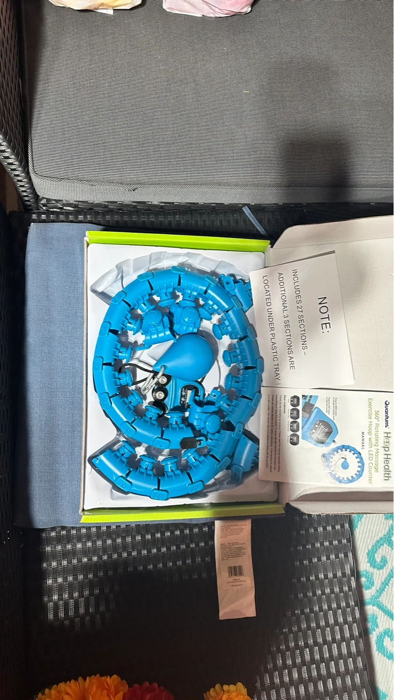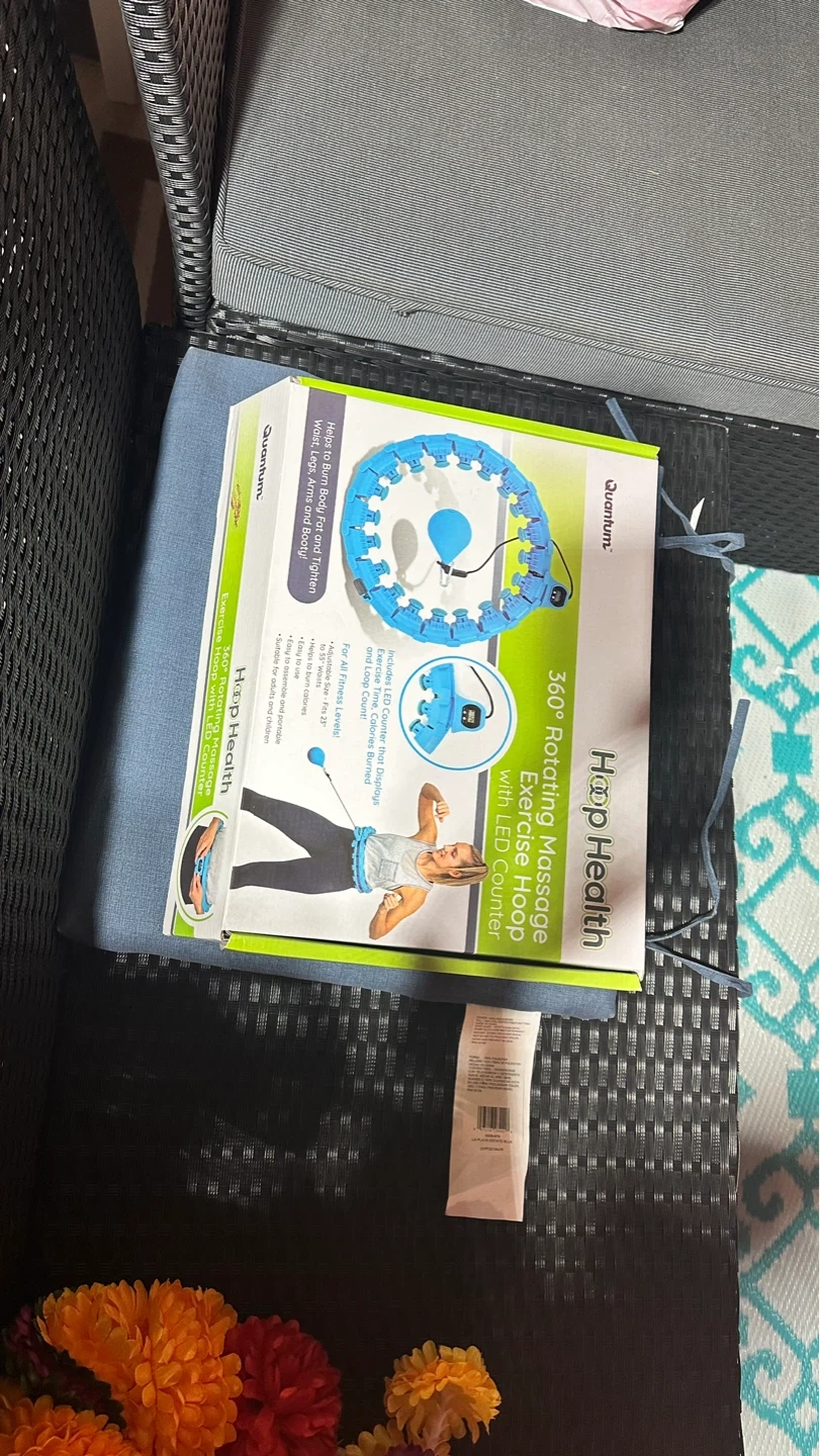 Quantim Health 360° Rotating Massage Exercise Hoop. Features a 360° rotating massage function and an LED counter. Includes additional sections for size adjustment. Brand new! Open to offers!