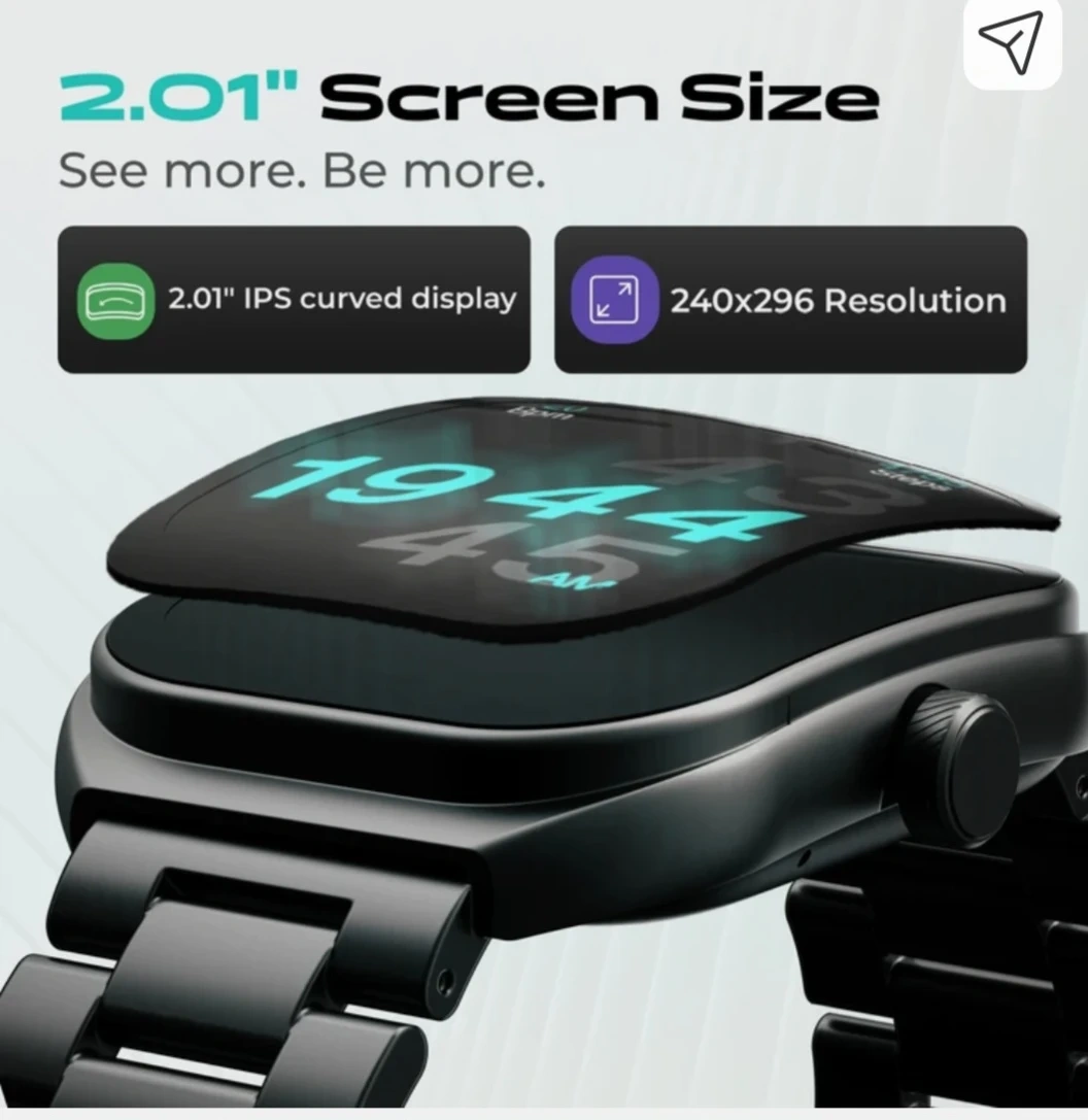 This smartwatch features a 2.01-inch curved HD display with a 240x296 resolution. It offers Bluetooth 5.3 connectivity and is IP68 water and dust resistant. Includes original box and accessories.