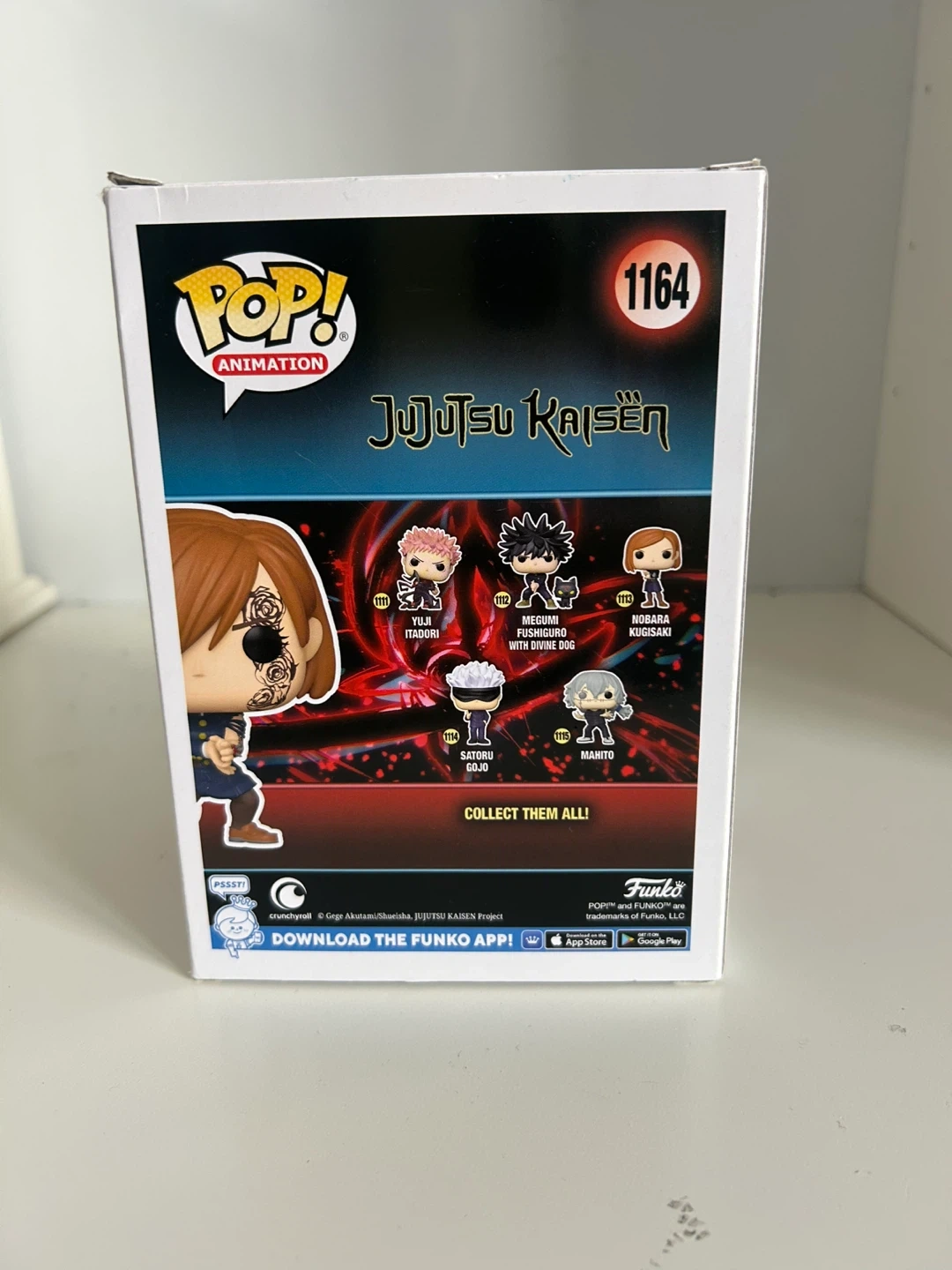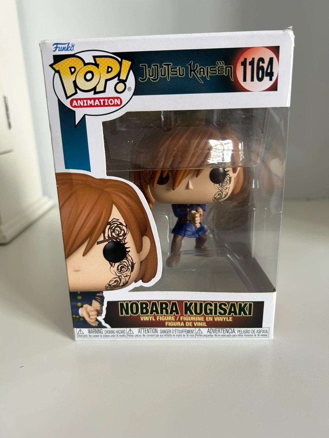 This is a Funko Pop! vinyl figure of Nobara Kugisaki from Jujutsu Kaisen, model number 1164. It comes in its original packaging. This collectible figure is made of vinyl.