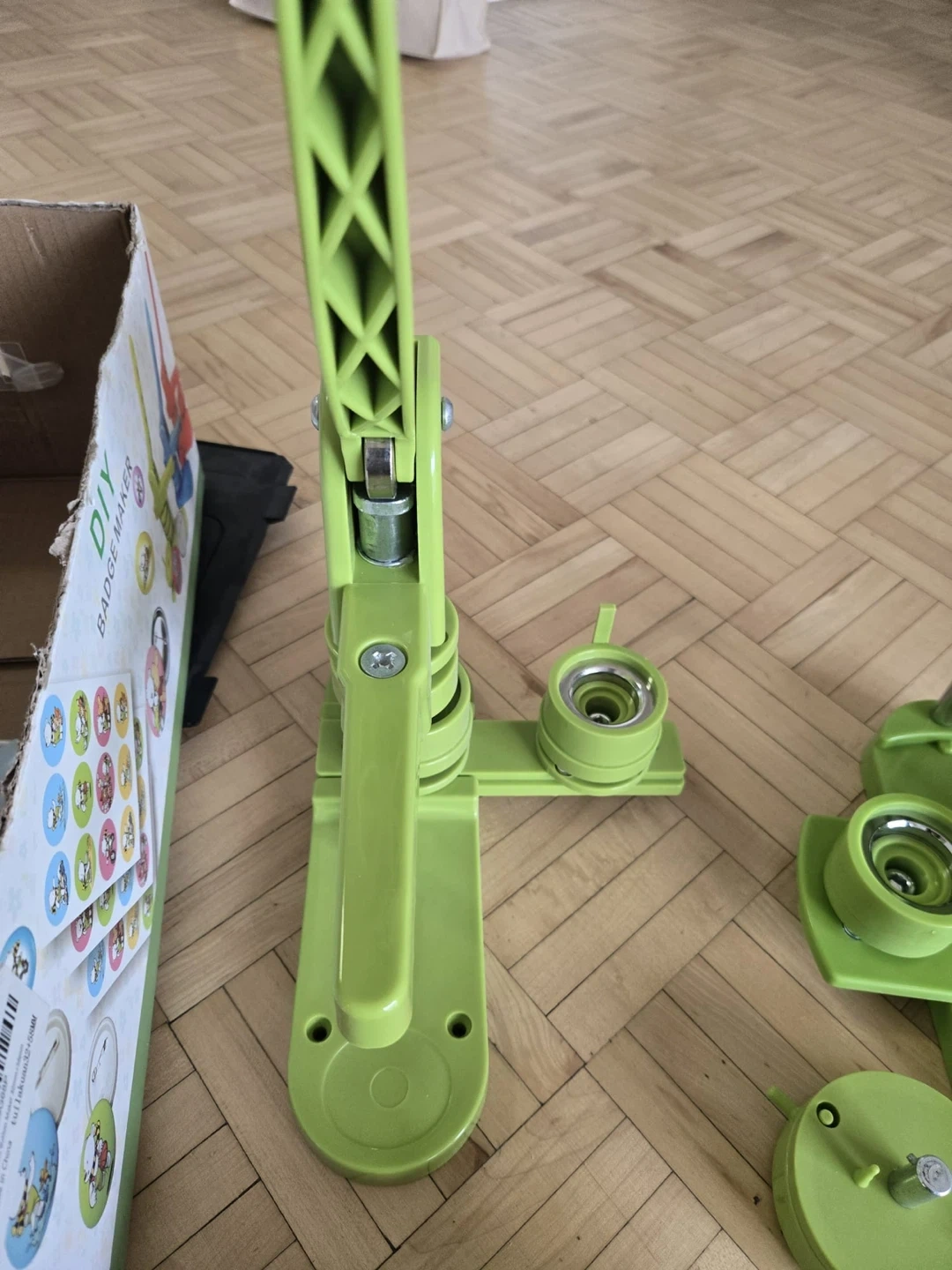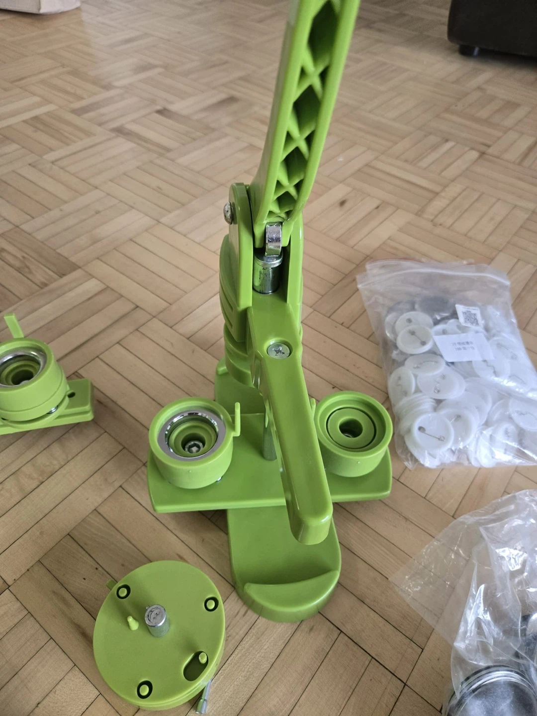 This kit includes a DIY badge maker press and a large assortment of button pin supplies. It's perfect for creating custom pins for events or personal use. The kit comes with multiple badge makers and ample pin components.
