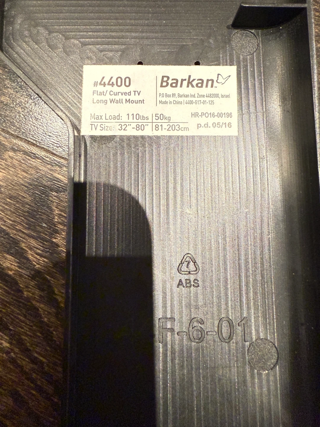 This is a Barakan wall mount for flat or curved TVs. It supports TVs from 32" to 80" (81-203cm). The max load is 110lbs (50kg). Includes hardware.