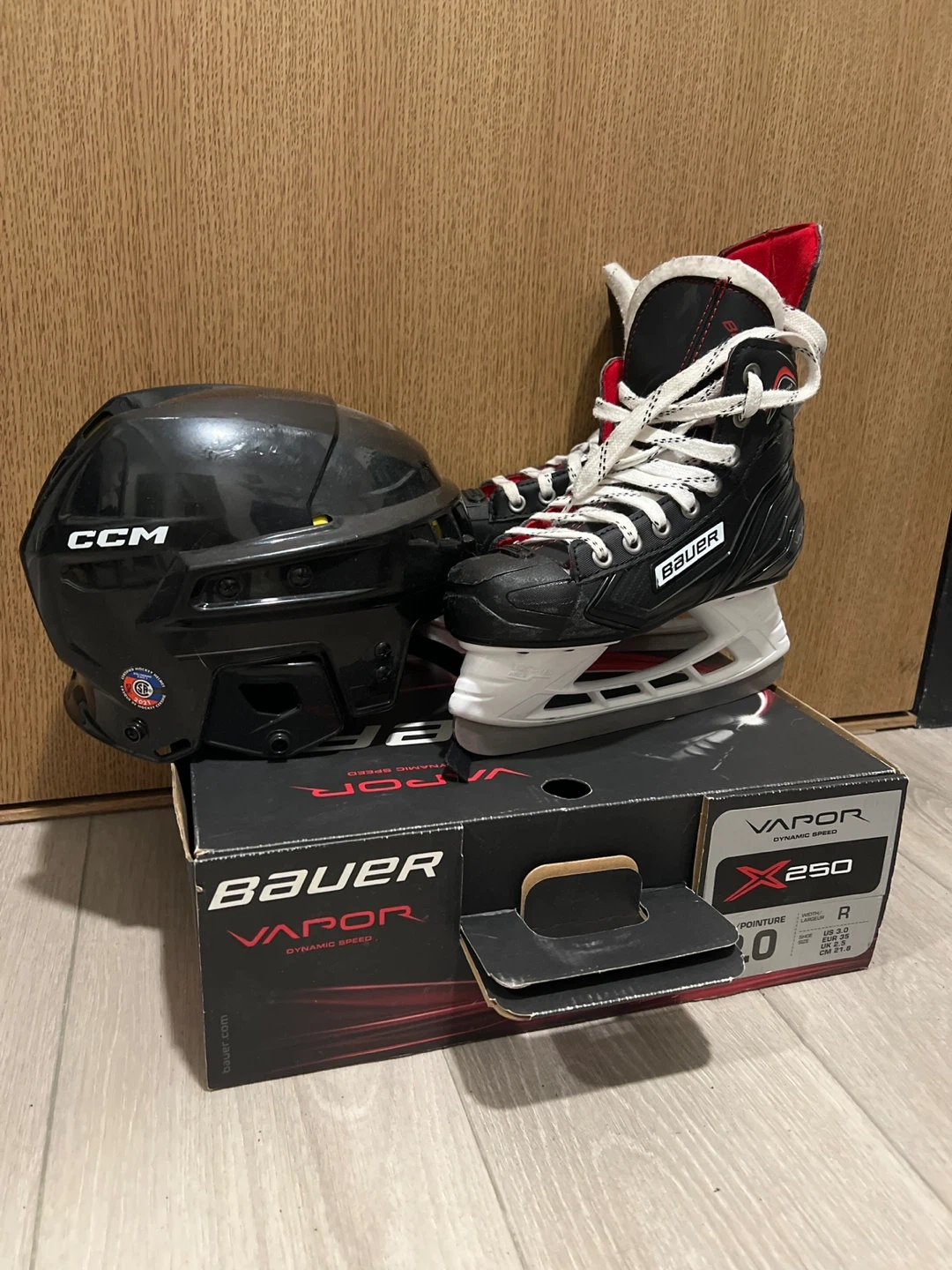 Helmet and Bauer Vapor X250 Youth Ice Skates - Size US 3.0