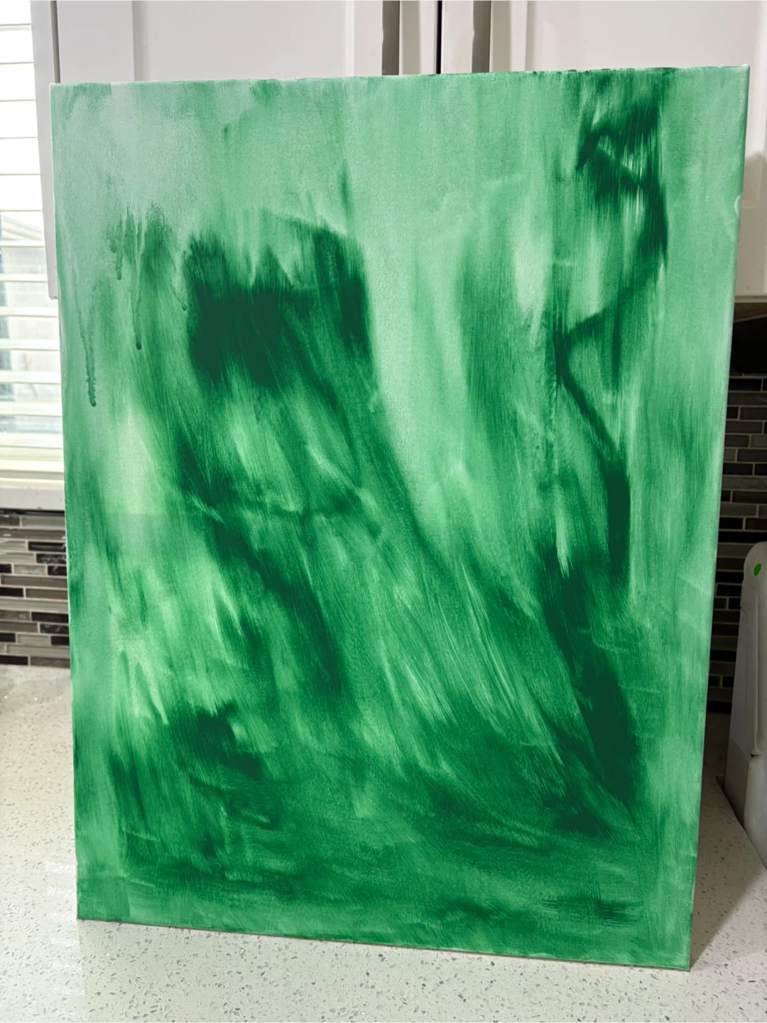 Selling a beautiful green abstract painting on canvas. The artwork features dynamic brushstrokes in various shades of green. Adds a splash of colour to any room!