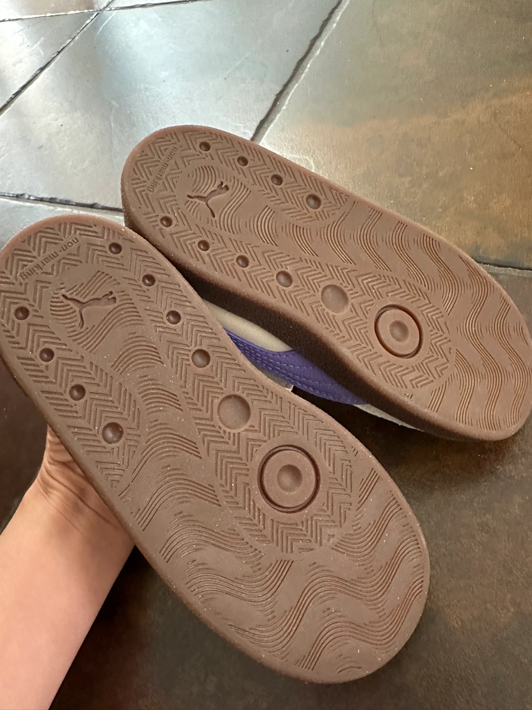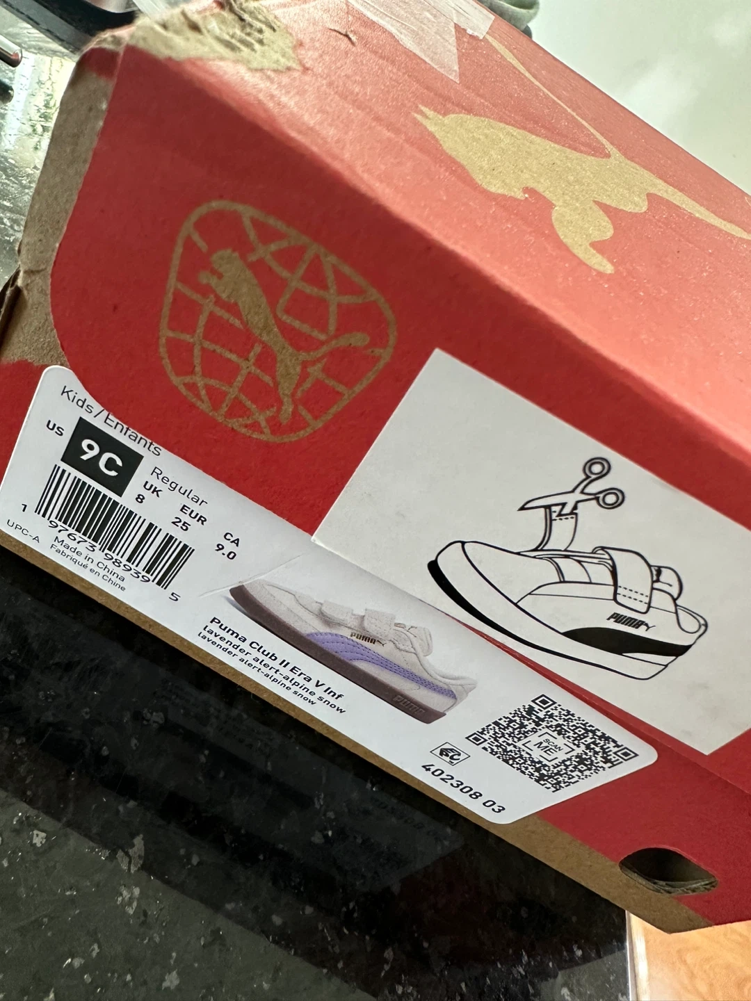 Puma Club II Straps toddler shoes in size 9C. Features a cream and lavender colourway with easy hook-and-loop closures. Perfect for little ones on the go!