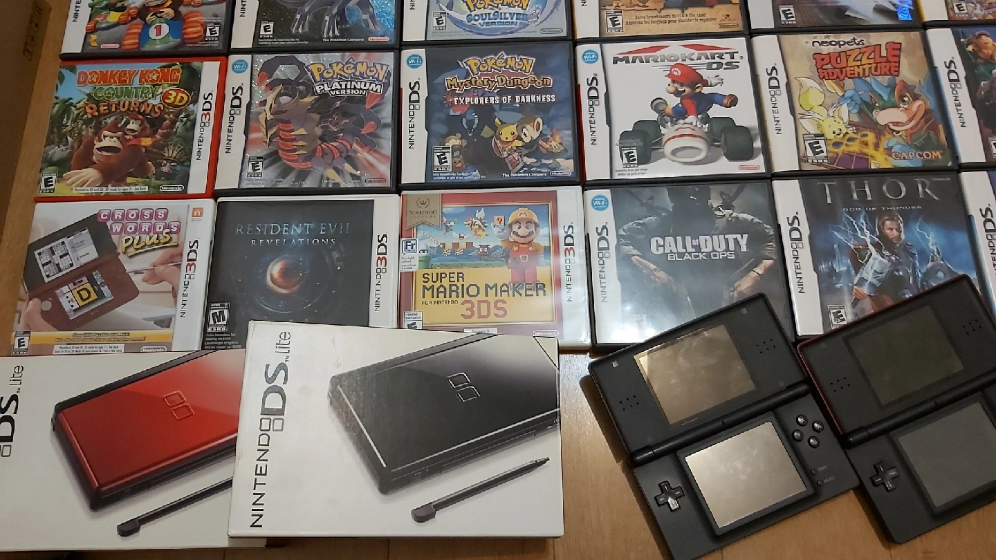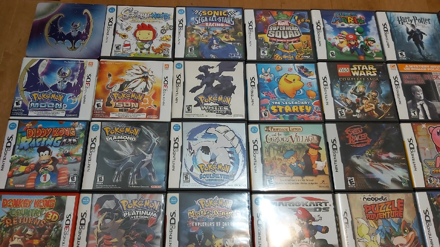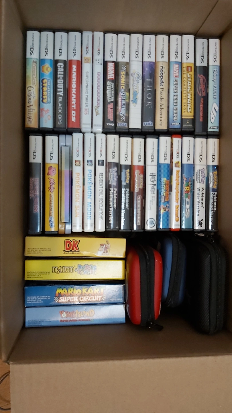 Collection of GBA 3DS and DS Games including Pokemon sun and moon with steelbook, Pokemon Platinum, Soulsilver, first print Resident Evil Revelations, Mario maker and Cross words still sealed, Donkey Kong King of Swing, Professor Layton, Hotel Dusk, Kirby, and more. All Games are CIB except for the 3 gba cartridges. Ds consoles work but hinges will not hold position. Selling the DS/3ds games and console as a lot for 1000 Selling the 7 GBA Games for $500 Buy EVERYTHING (gba, ds, 3ds) pictured for $1400 Pickup Midland and ellesmere