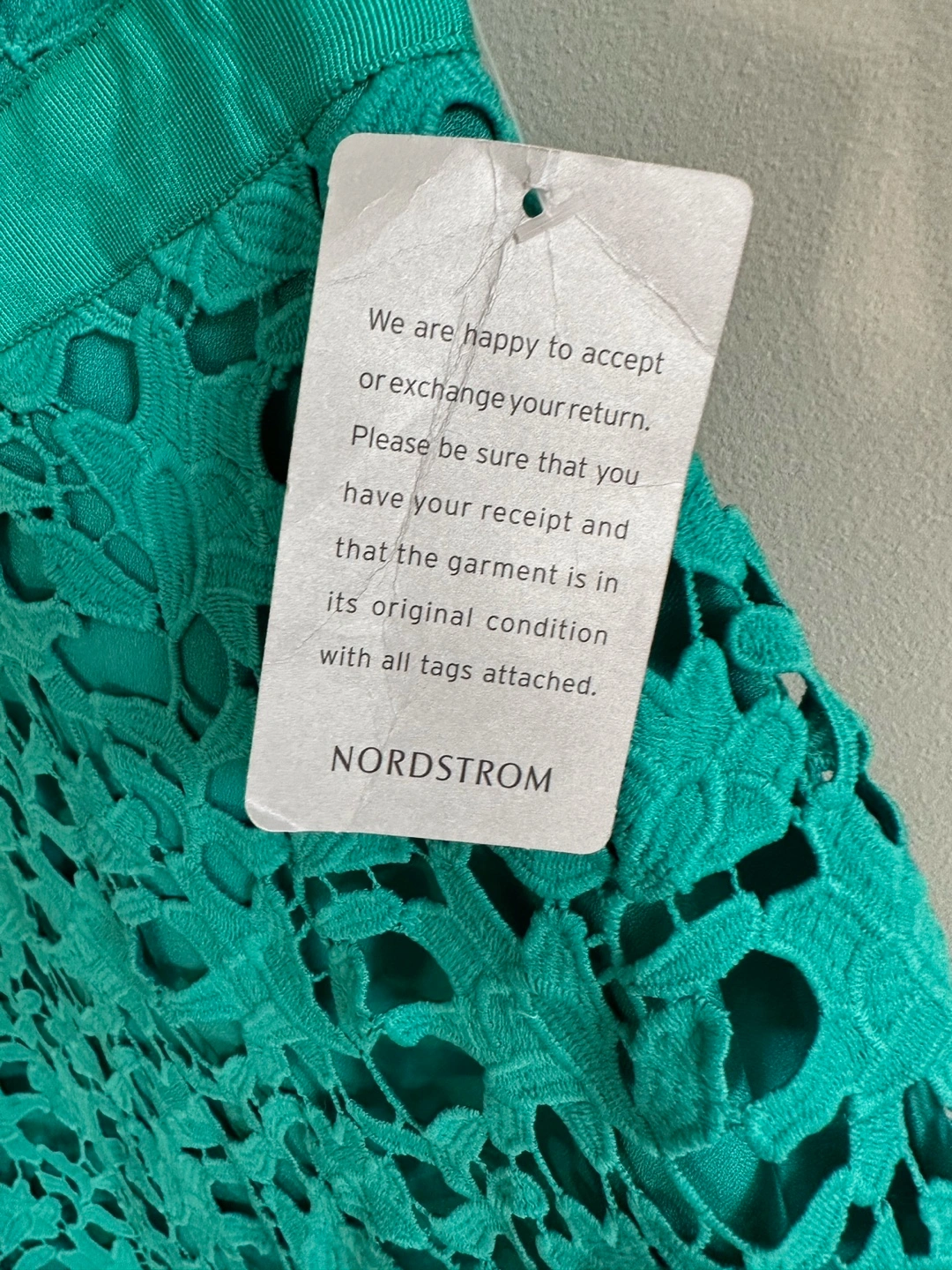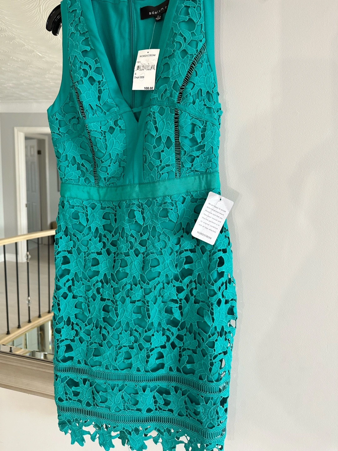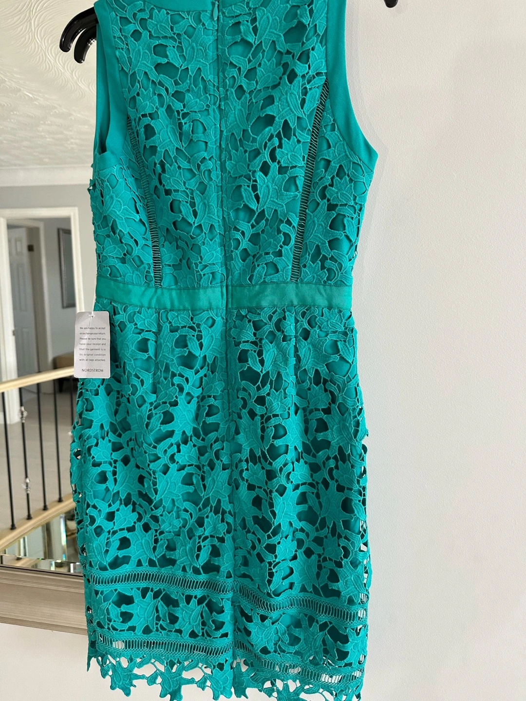Green lace dress with a V-neck. Sleeveless with a fitted silhouette. Size small. Brand new with tags.