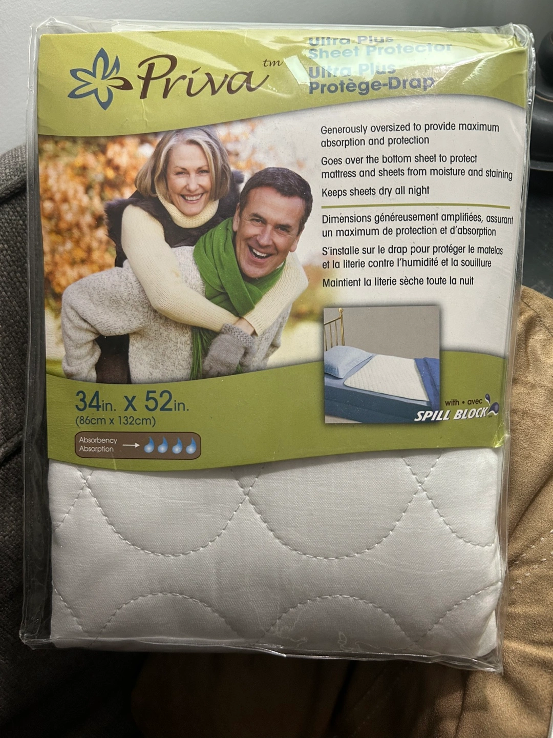 Generously oversized to provide maximum absorption and protection. Goes over the bottom sheet to protect mattress and sheets from moisture and staining. Keeps sheets dry all night.
