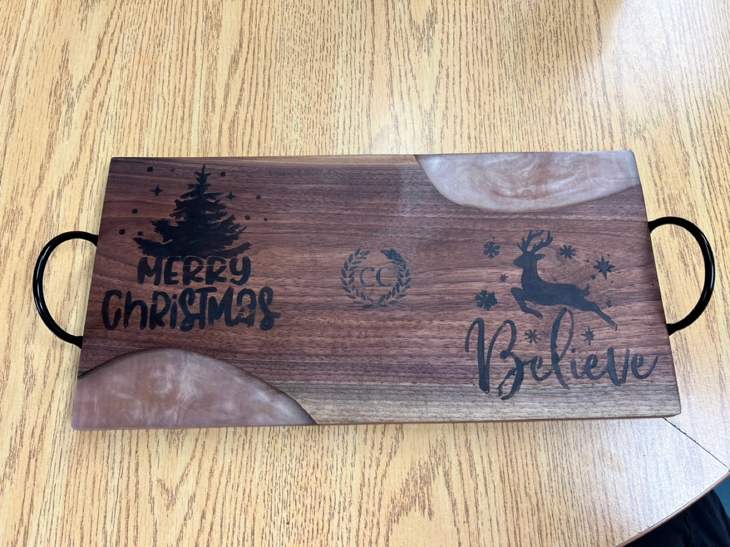Buy & SellChristmas Serving TrayChristmas Serving Tray$40Wooden serving tray with epoxy resin inlay. Engraved with Christmas theme. Two black metal handles.Dimensions8” W X 18” L0 chats·0 favorites·19 viewsSELLERverifiedAdamStouffville650 reviewsWHERE TO MEETCheck Location