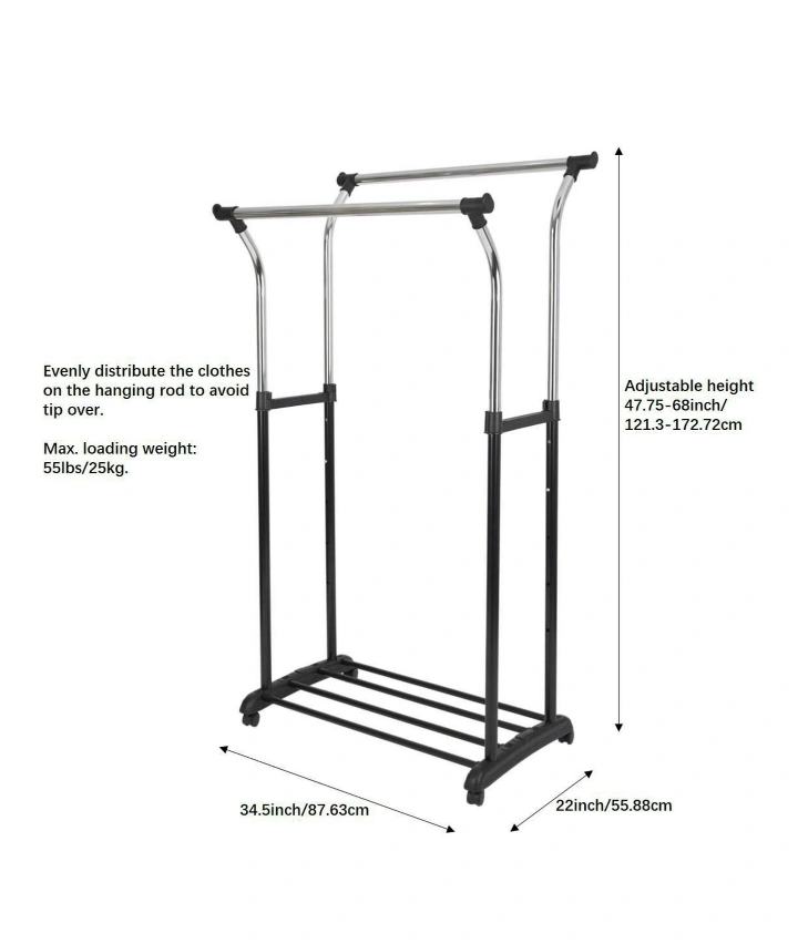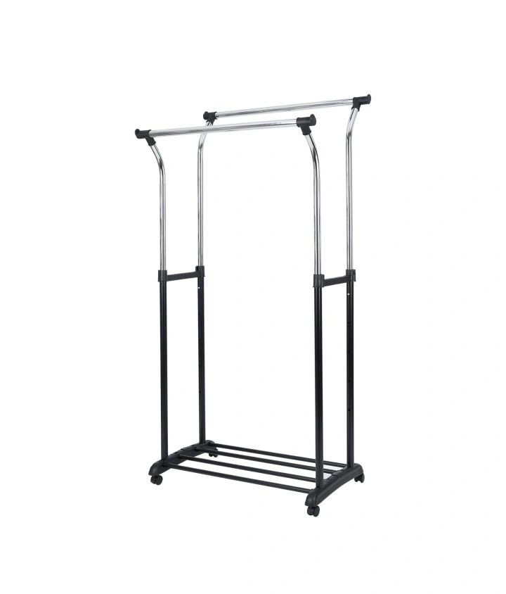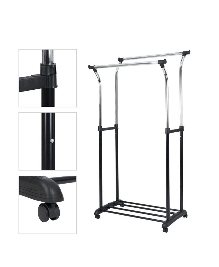 Mainstays Double Rod Garment Rack - Rolling Clothes Organizer - Black/Chrome