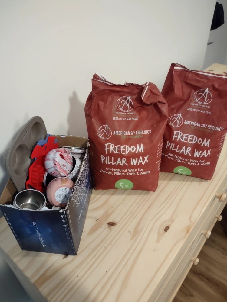 Two 5lb bags of American Soy Organics Freedom Pillar Wax. All-natural wax for votives, pillars, tarts & melts. a complete Kit!