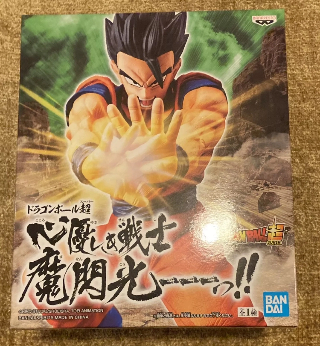 Figure from the Dragon Ball Z series. Gohan is in a fighting pose with a bright yellow energy blast. The figure appears to be new and unopened. Includes original box.