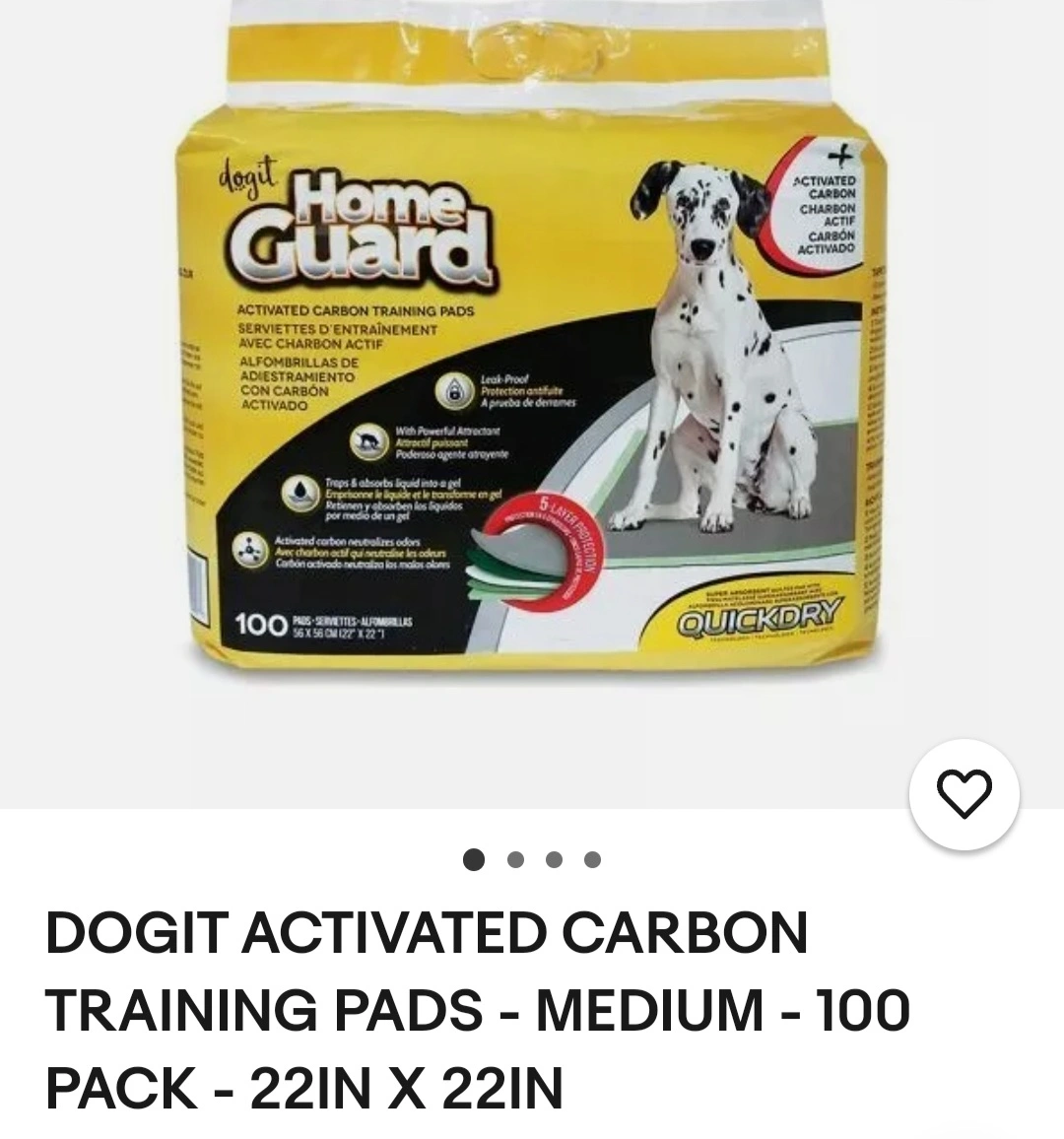 259Activated carbon training pads. Leak-proof, quick-dry, and with a powerful attractant. 22 inches by 22 inches. 100 pack. Brand New Pack Never Opened $10 Pick up at Yonge & Steeles