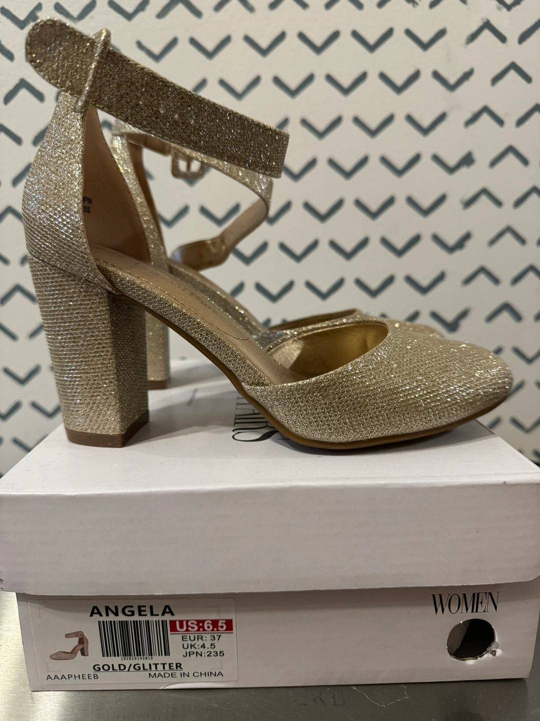 Gold Glitter Ankle Strap Heels Size 6.5 or Eur 37