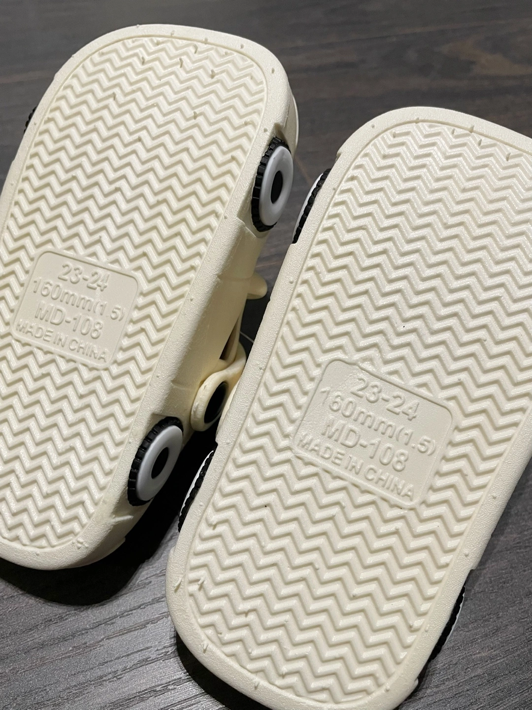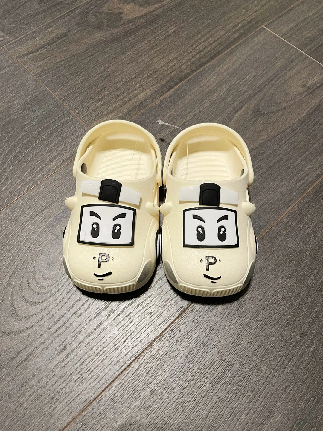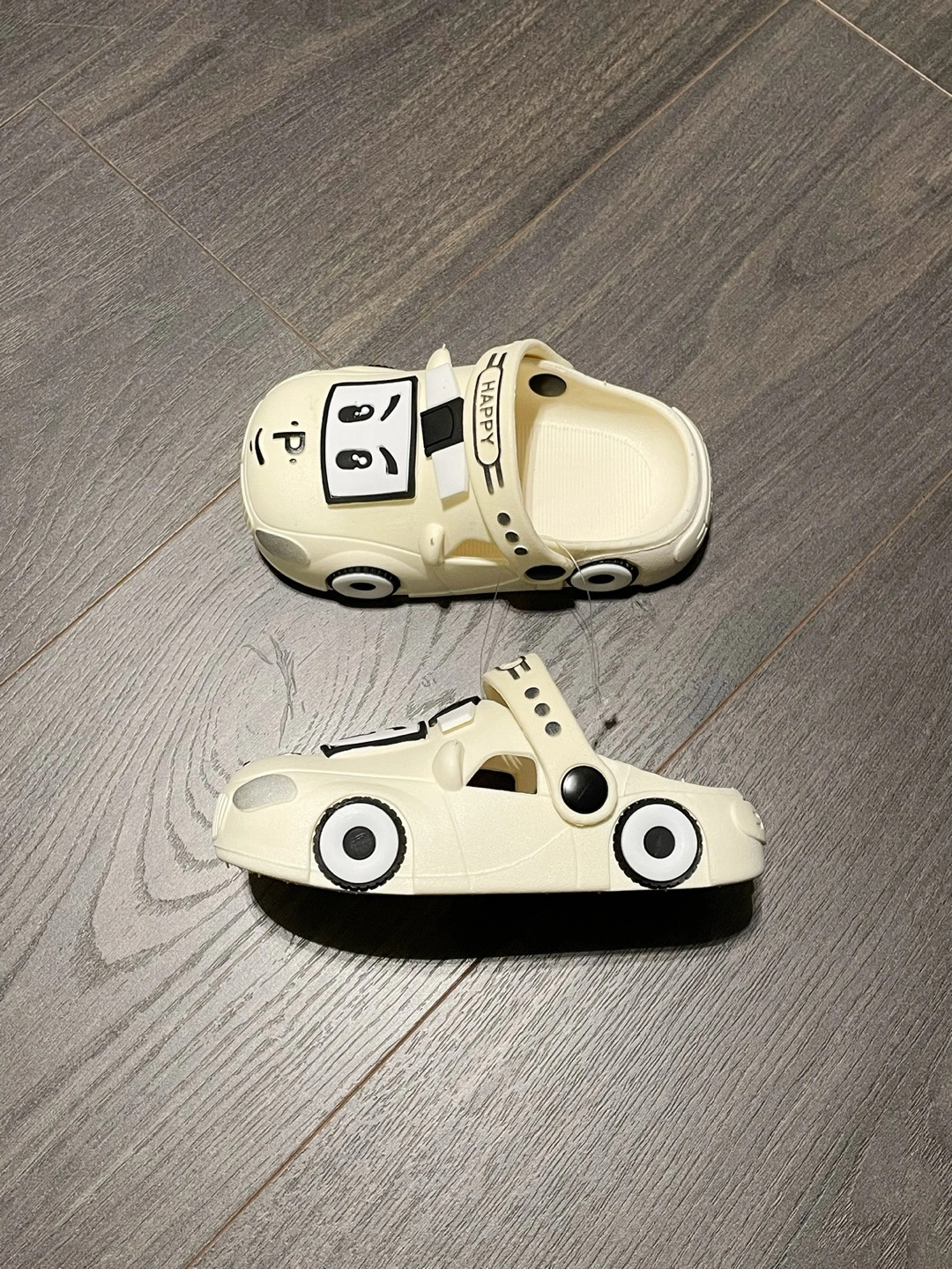 I bought an extra pair of sandals for our kid and realized we would only need 1 pair, so selling these really cute car sandals. They can be used indoor or outdoor, and can be worn in 2 styles, as sandals with strap at the back, or as slippers with strap at the front.