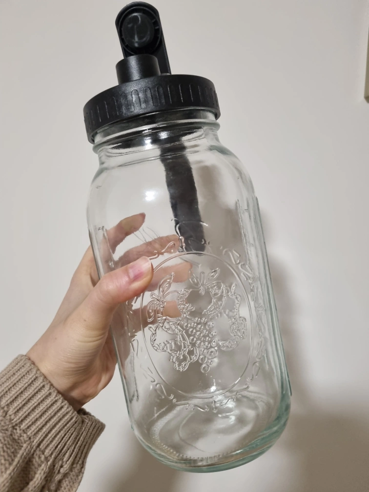2 Large glass mason jar with a black spout lid. Perfect for making and storing beverages.