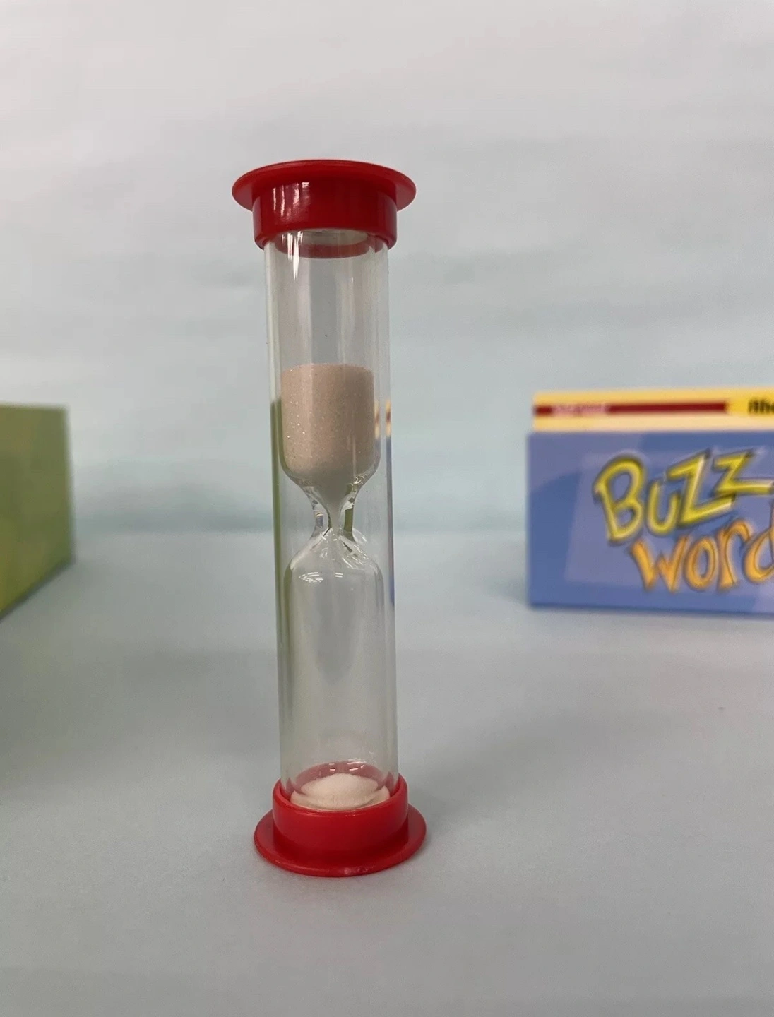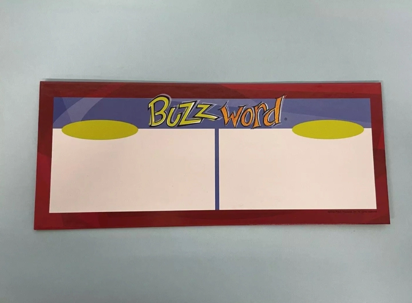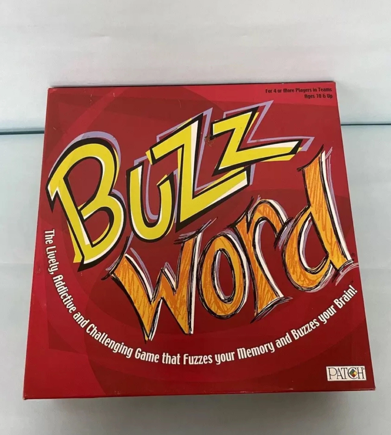 Board game with cards, a sand timer, and a scoring board. Players take turns reading clues to guess the buzzword. The first team to reach 10 points wins.