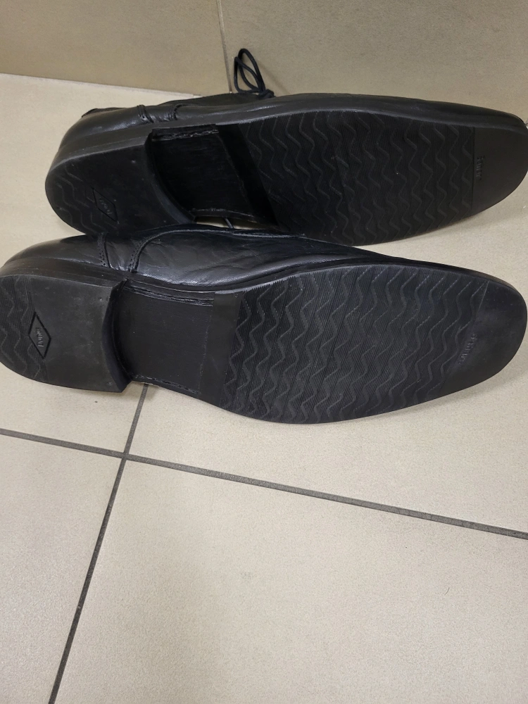Black leather dress shoes. Lace-up. Non-slip rubber lining. Size 10.