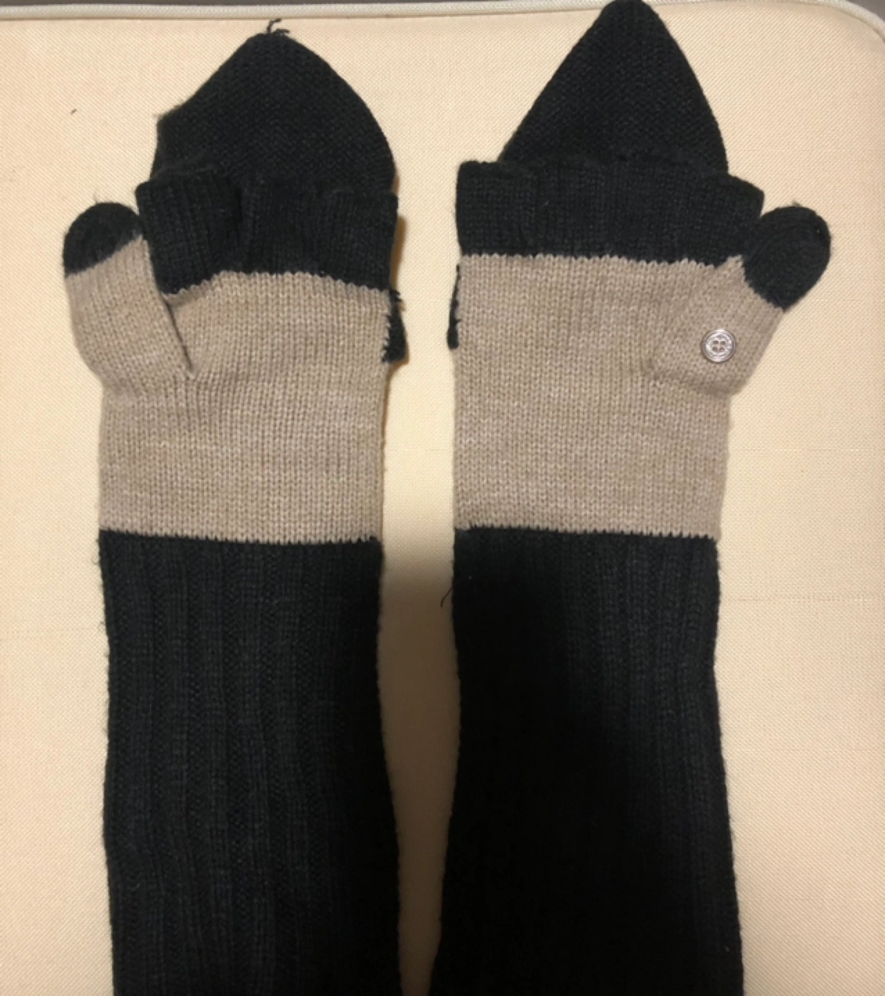 Knitted fingerless/full gloves in black and beige. Pick up @midtown or downtown. Cash only🤗