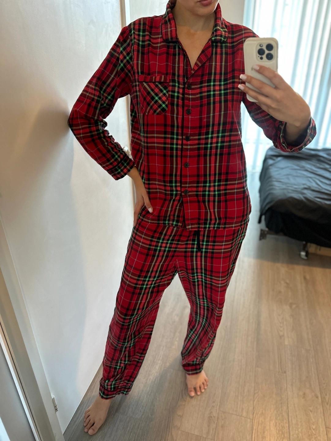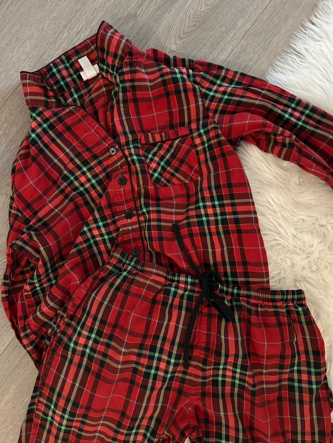 991Women’s pajama set, size M. Long-sleeved shirt with a button-up front and a chest pocket. Pants with a drawstring waist. Used, in a good condition