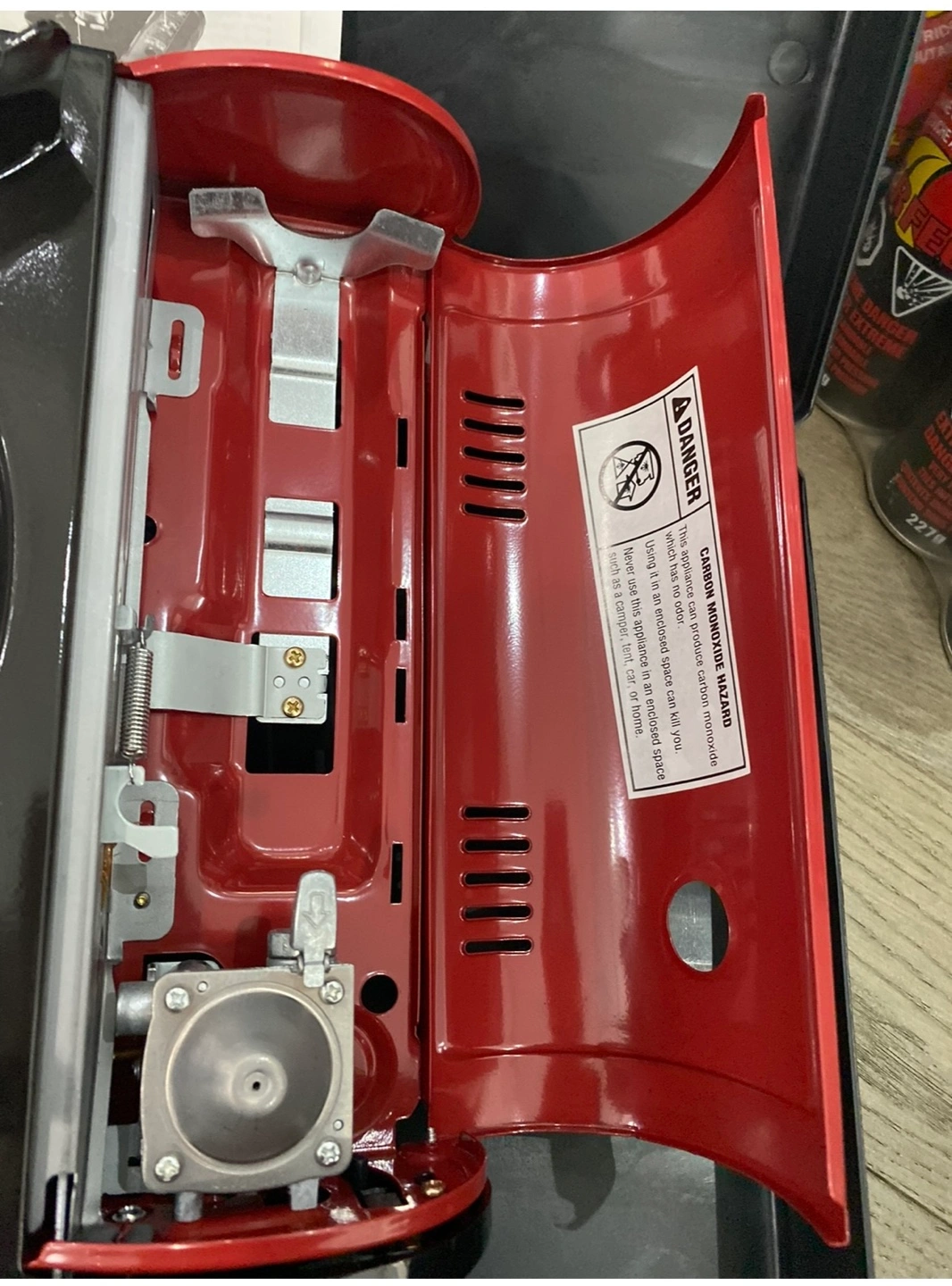 86Portable gas stove, comes with carrying case. Includes instructions, brand new.