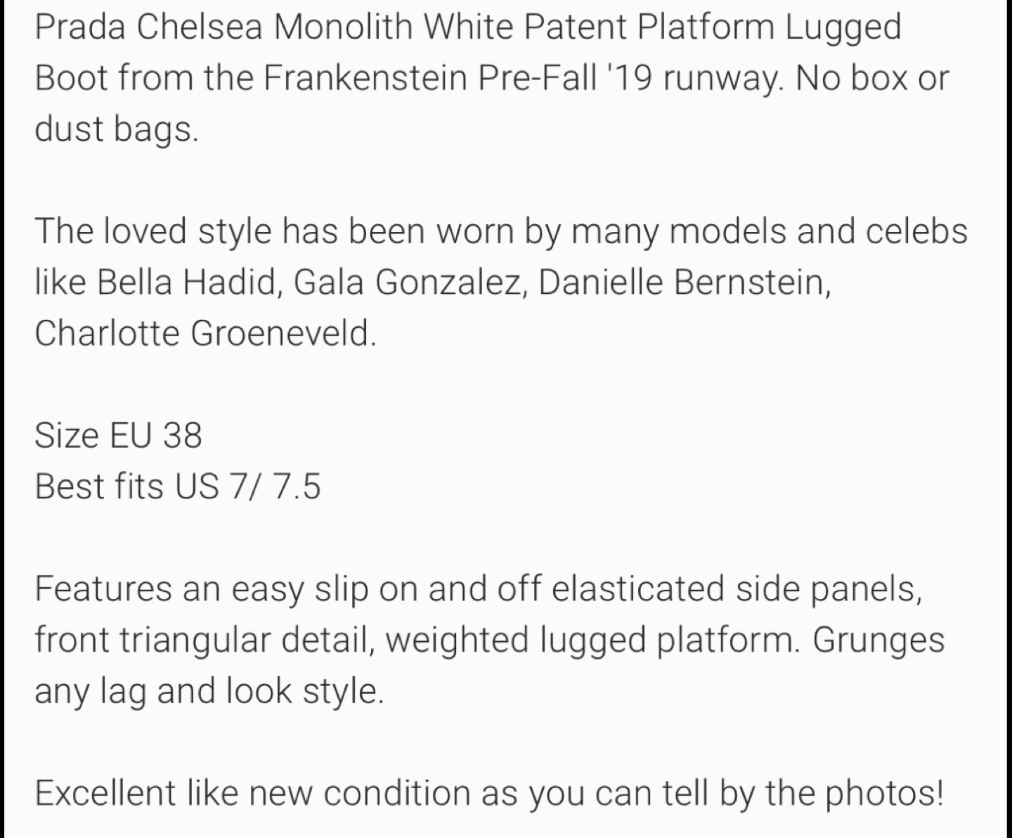 76White patent leather Chelsea boots with black elastic panels and chunky platform soles. Made in Italy.