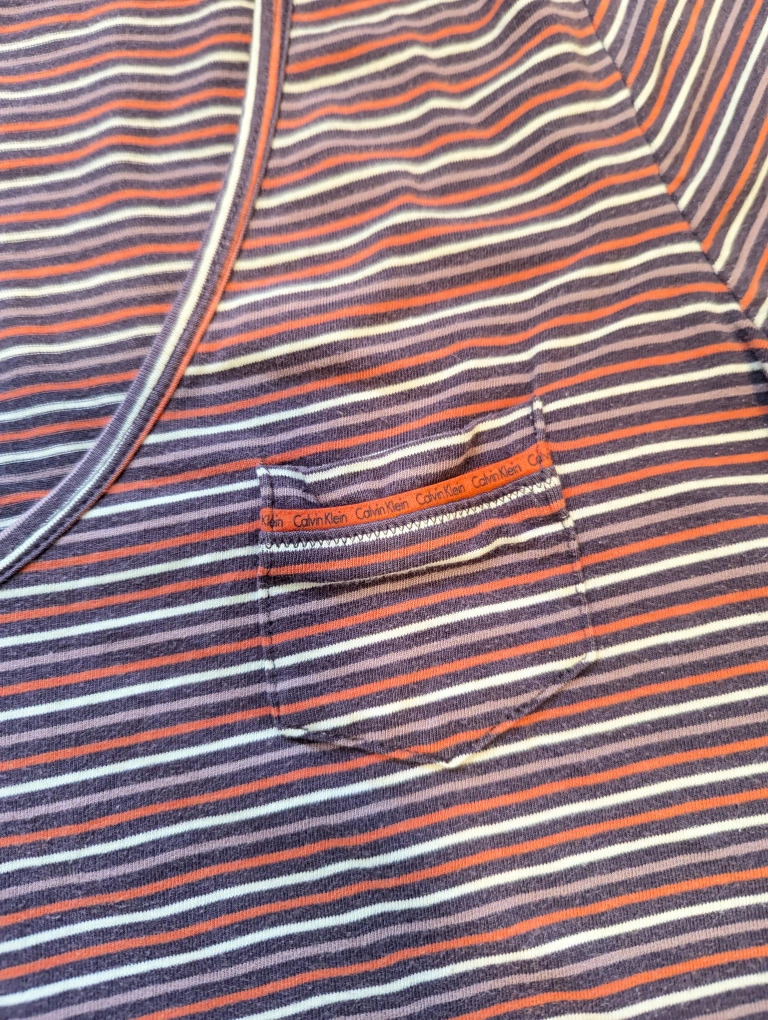 Striped V-neck t-shirt with short sleeves and a pocket. From Calvin Klein. Perfect to throw on in the summer!! Cotton. Size S/P. PICK UP 13th and Trutch OR UBC. I'm having a closet clean out of great mostly womens clothes! :) Check out my other ads for more shirts, jeans, dresses and more! Aritzia, lulu, etc. Willing to bundle for multiple items.