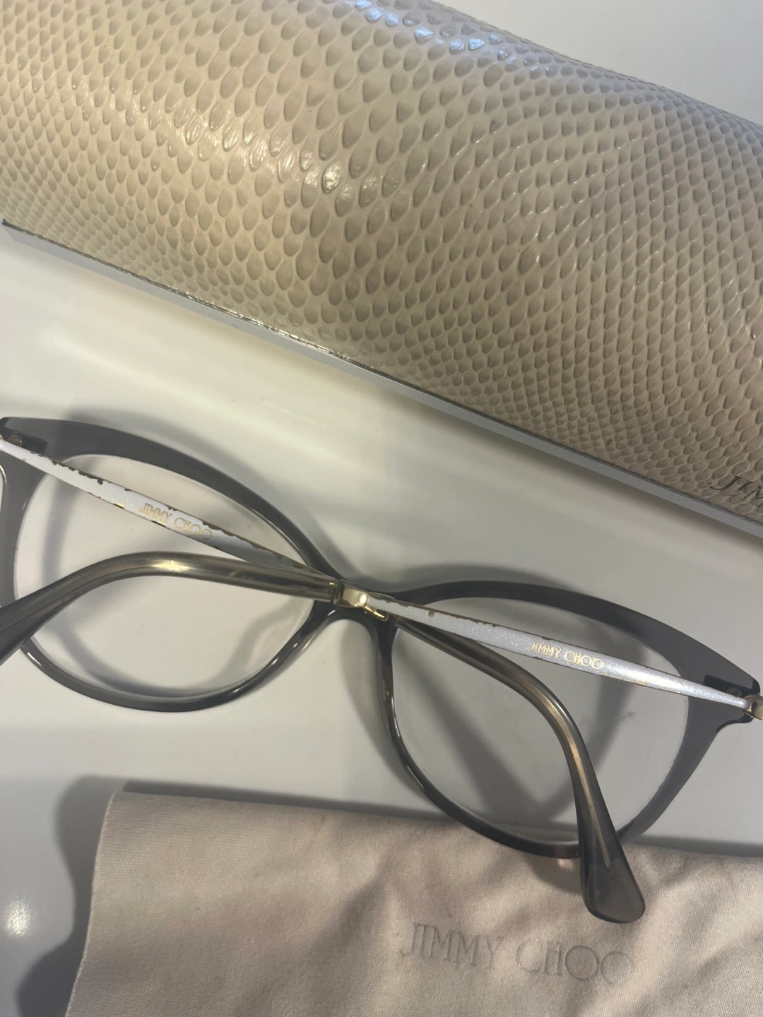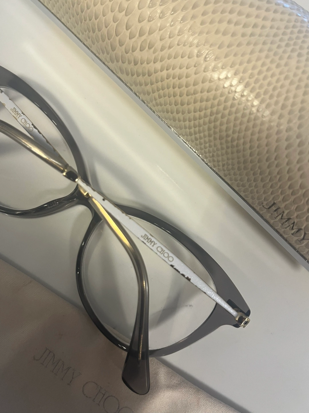 23Grey and white cat eye eyeglasses. Includes case and cleaning cloth.