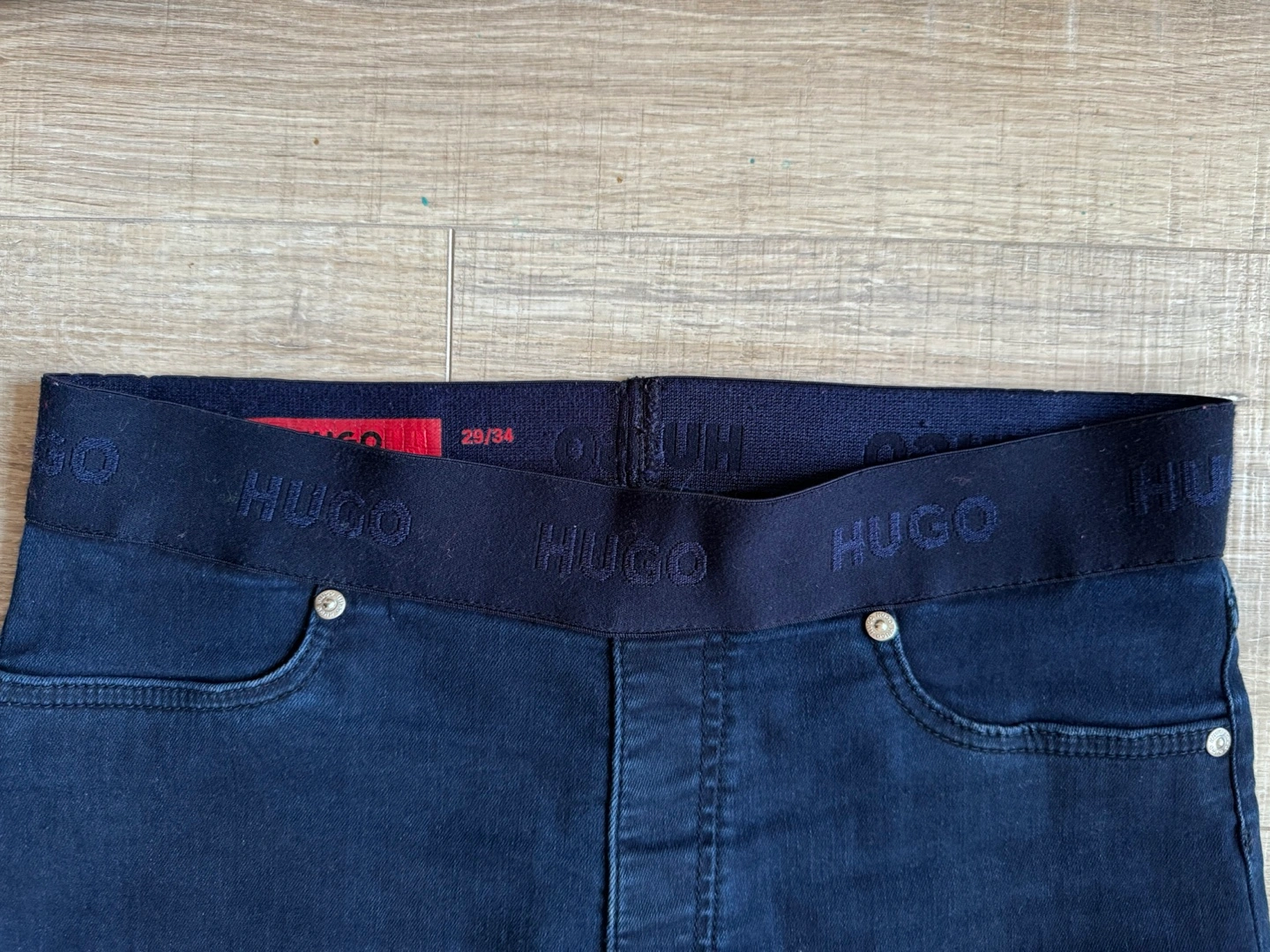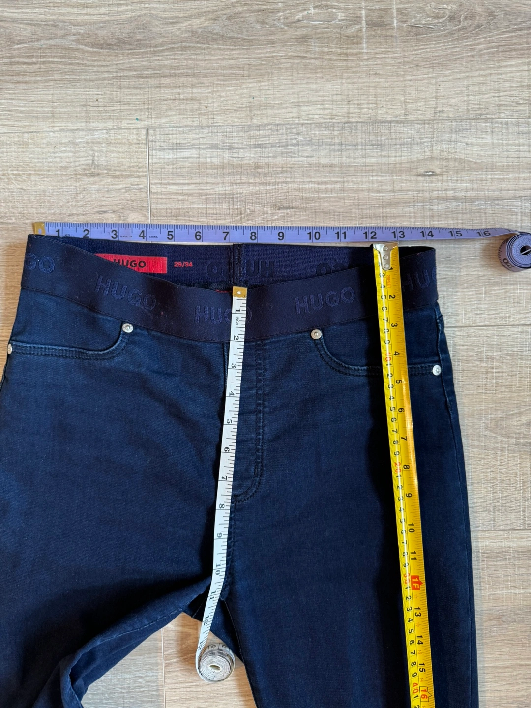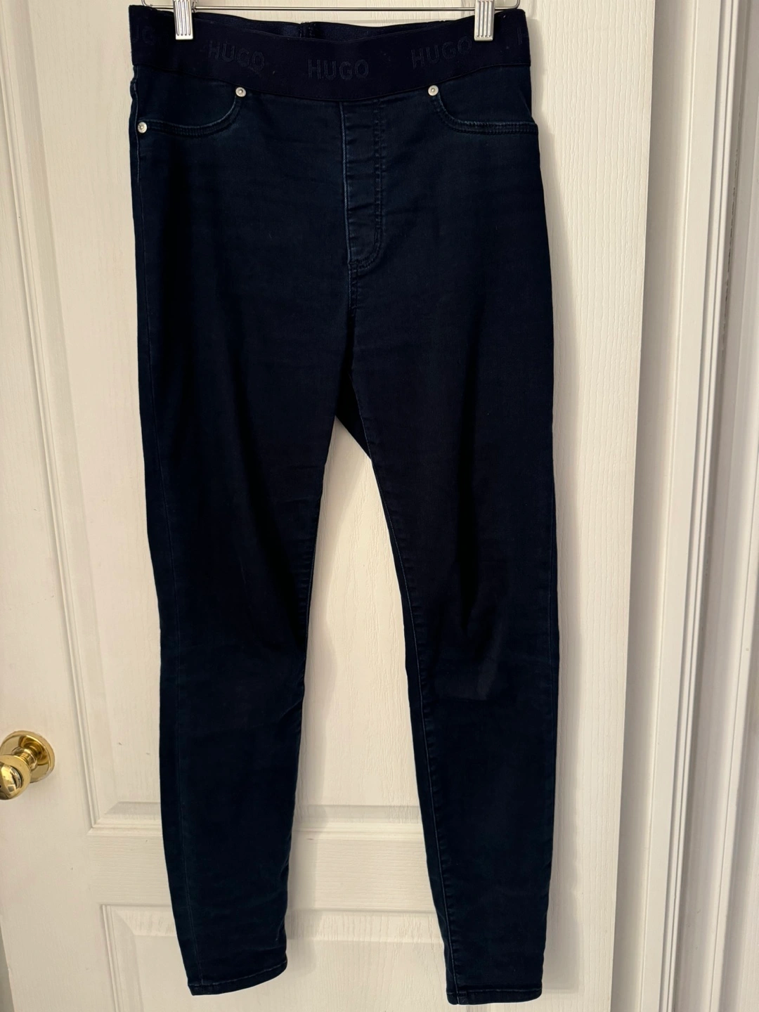 1000+Dark wash skinny jeans with an elastic waistband. Size 29/34